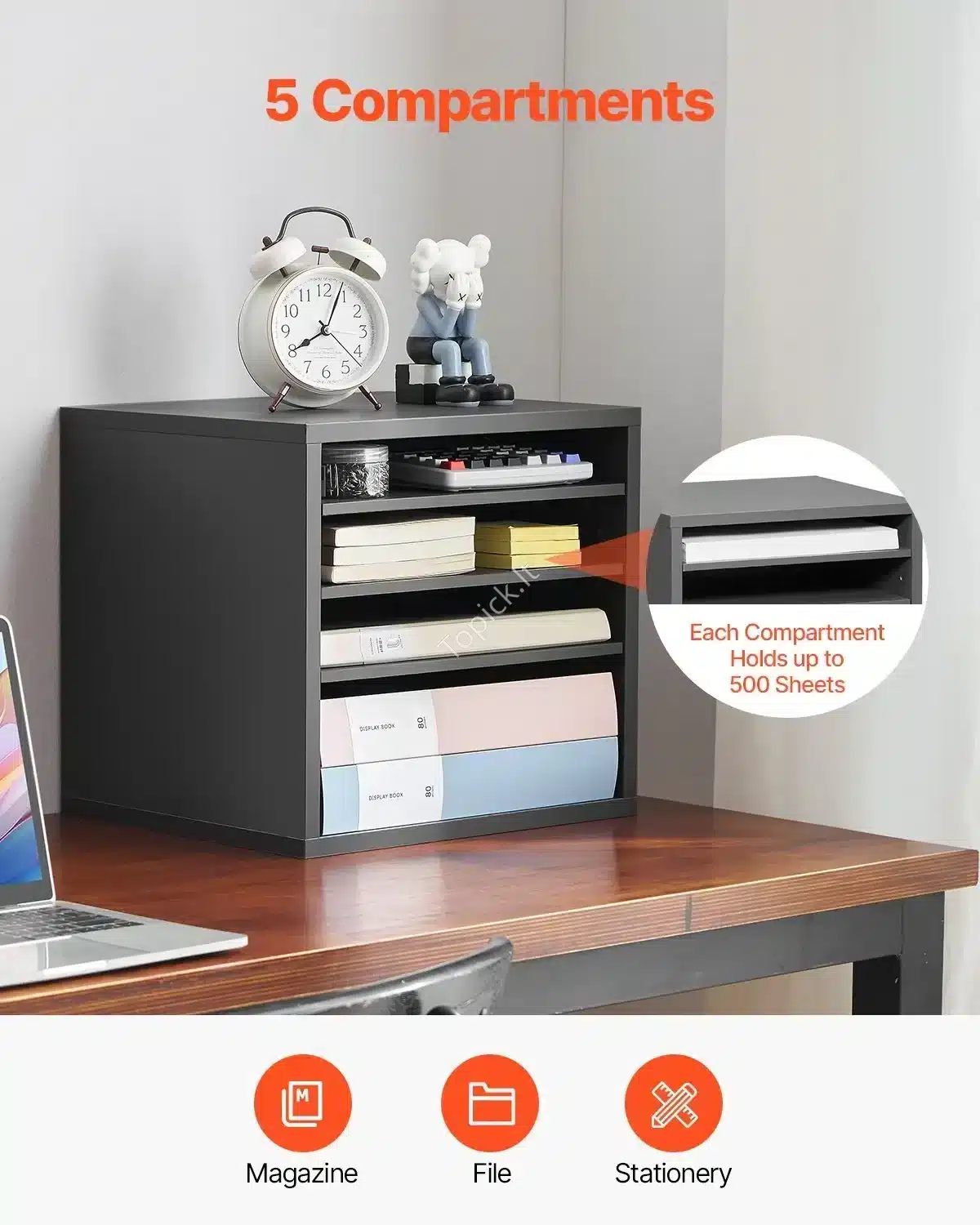 - Tobula Stalo Tvarka: Turi 5 lygius skyrius, puikiai tinkančius kasdieniams dokumentams, laiškams, sąskaitoms ar studijų medžiagai. Pilka spalva tinka prie bet kokio modernaus biuro ar minimalistinio stalo dizaino, suteikdama neutralumo ir ramybės pojūtį.