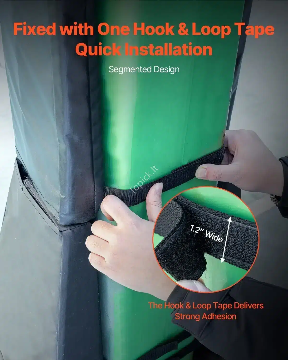 - Montavimas: Paprastas ir saugus – greitai užvyniojamas aplink stulpą ir tvirtinamas tvirtomis lipdukų (Velcro) juostomis.