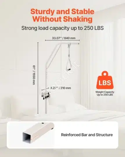 Ieškote patikimos ir stabilios pagalbos priemonės, palengvinančios judėjimą? Mūsų laisvai pastatomas paciento pakėlimo rėmas yra puikus pasirinkimas senjorams, neįgaliems asmenims, besilaukiančioms moterims ir visiems, turintiems ribotą judumą. Ši trapecija padeda saugiai atsisėsti, atsistoti ir persikelti iš lovos.