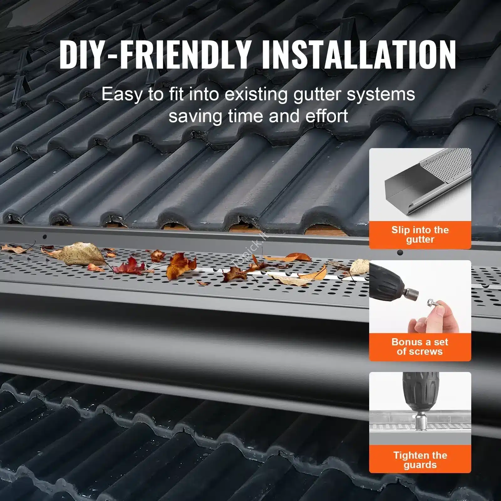 Latakų apsauga nuo lapų, 31,7 m ilgis, 15,2 cm plotis, tinklinė danga lietvamzdžiams