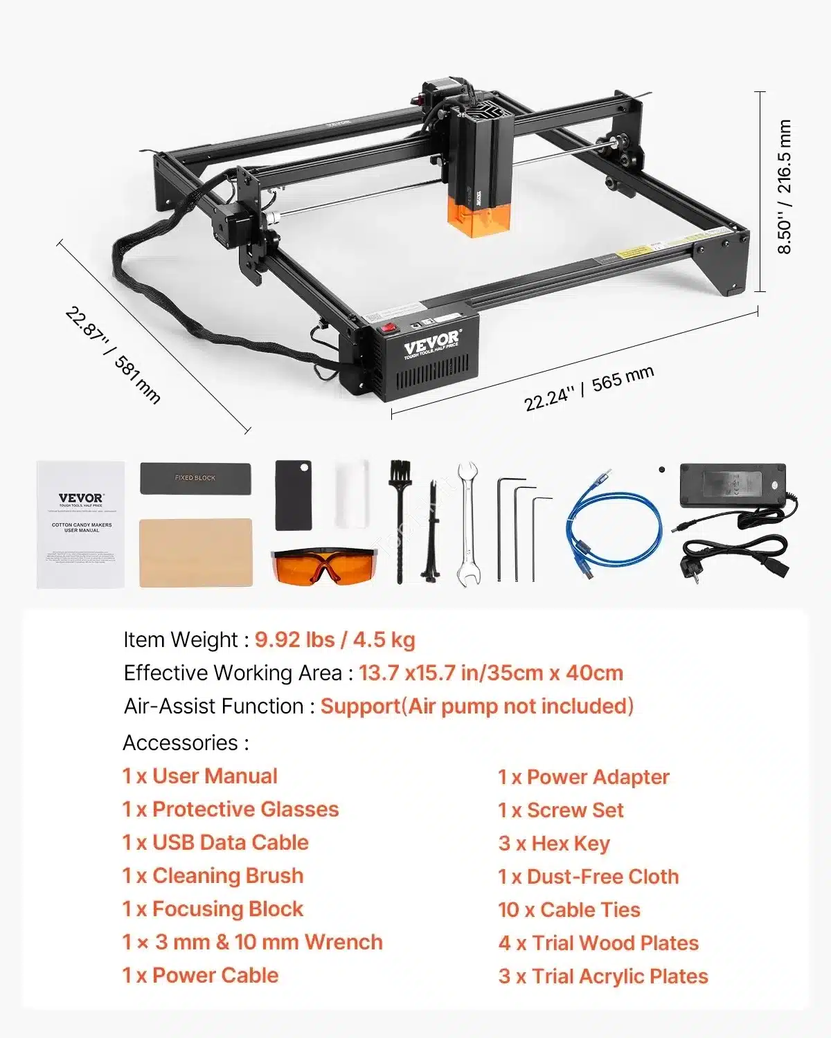 - Saugumas: lazeris su akių apsauga, filtruojantis 97 % žalingos šviesos, ir apsauginiai akiniai komplekte.