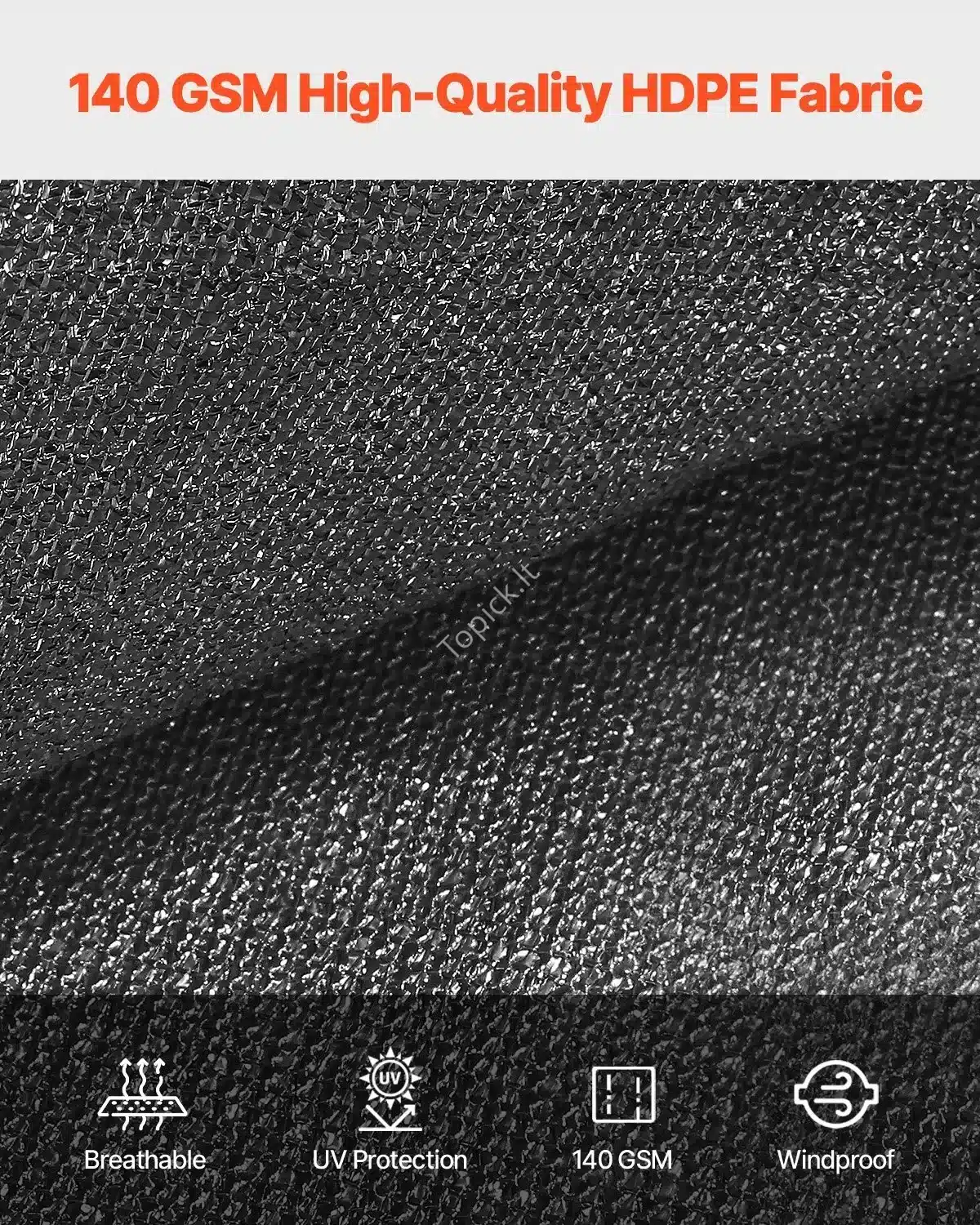 - Medžiaga: Pagamintas iš 140 g/m² didelio tankio HDPE (didelio tankio polietileno). Yra atsparus UV spinduliams, todėl spalva ilgai neišblunka.