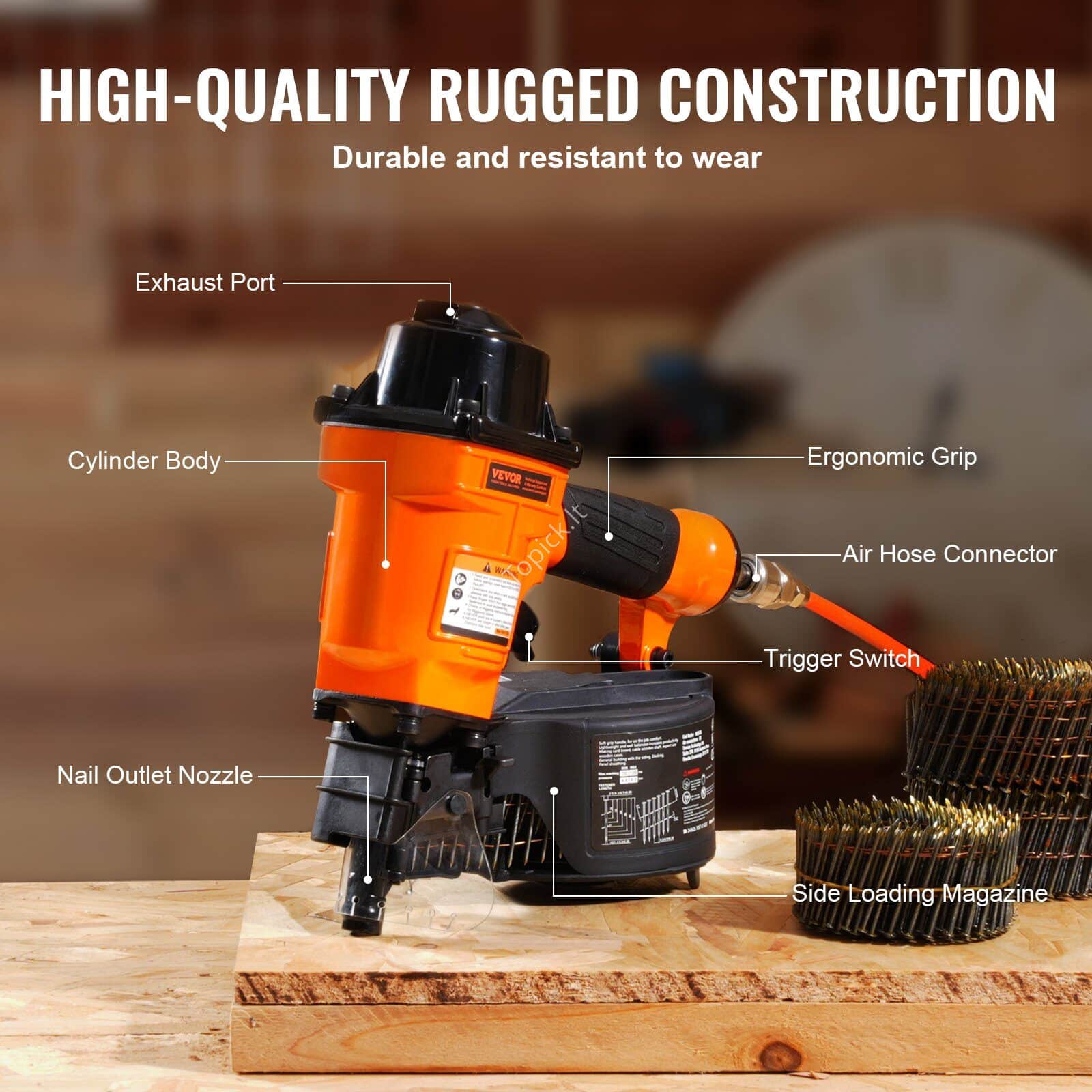 💥 Galinga MCN55 coil‑vinikalė – profesionalus sprendimas stogams, tvoroms, palečių gamybai, klojiniams ir medinių dėžių surinkimui. Patikimai veikia su 25–57 mm ilgio, Φ 5,5–5,7 mm galvutės coil vinimis – idealus namų ir statybų darbams.