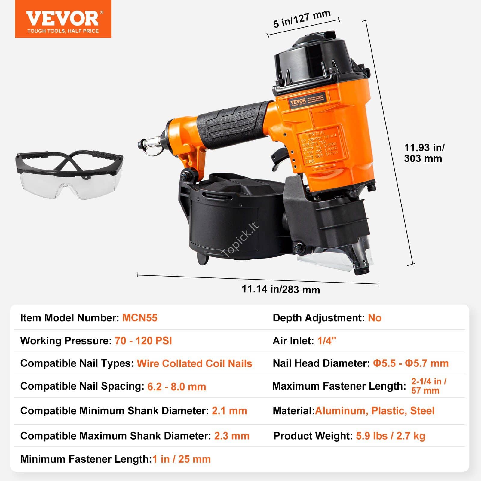 🔩 Pneumatinė coil‑viniakalė MCN55 – 25–57 mm vinių gylis, 300 vnt talpa 🔩