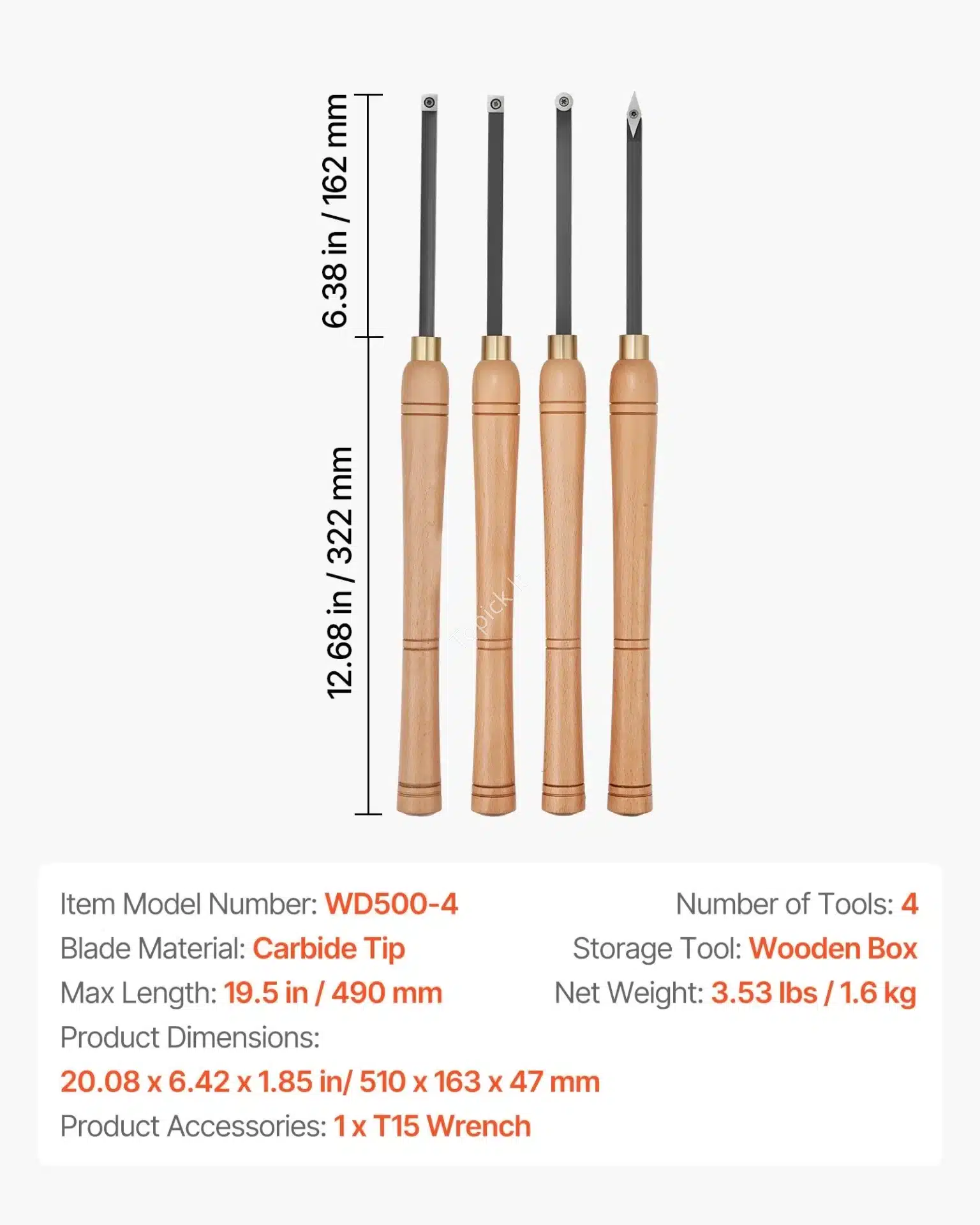 Ieškote kokybiškų įrankių medžio tekinimo staklėms? Šis 4 dalių medžio tekinimo peilių rinkinys yra puikus pasirinkimas! Pagaminti iš tvirto volframo karbido, jie yra itin atsparūs dilimui ir idealiai tinka tiek pradedantiesiems, tiek profesionalams. 🌳
