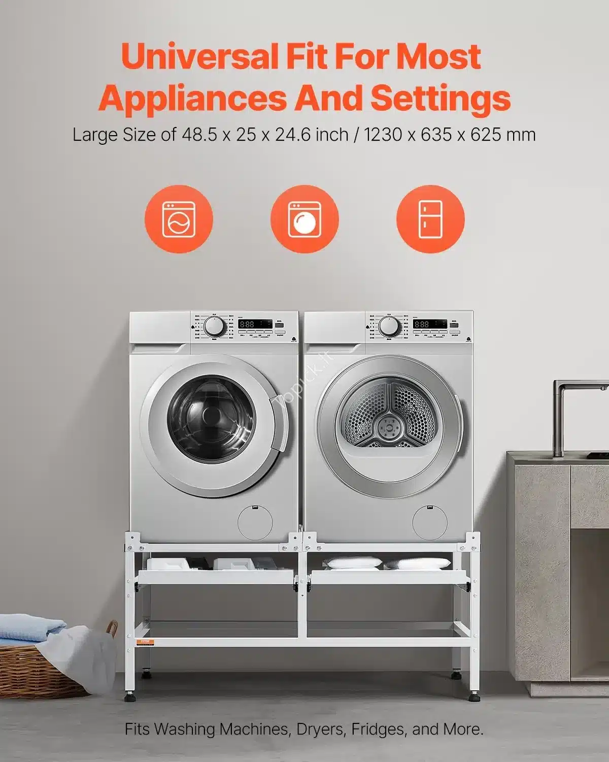 - Universalumas: Tinka daugeliui standartinių skalbimo mašinų ir džiovyklių.