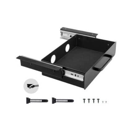 - Tvirtas ir Ilgaamžis: Pagamintas iš aukštos kokybės Q235 plieno, šis organizatorius yra ypač patvarus ir atsparus. Jis tvirtinamas šešiais taškais, todėl stabilumas garantuotas net ir prie reguliuojamo aukščio stalo. Atlaiko 5,1 kg svorį.