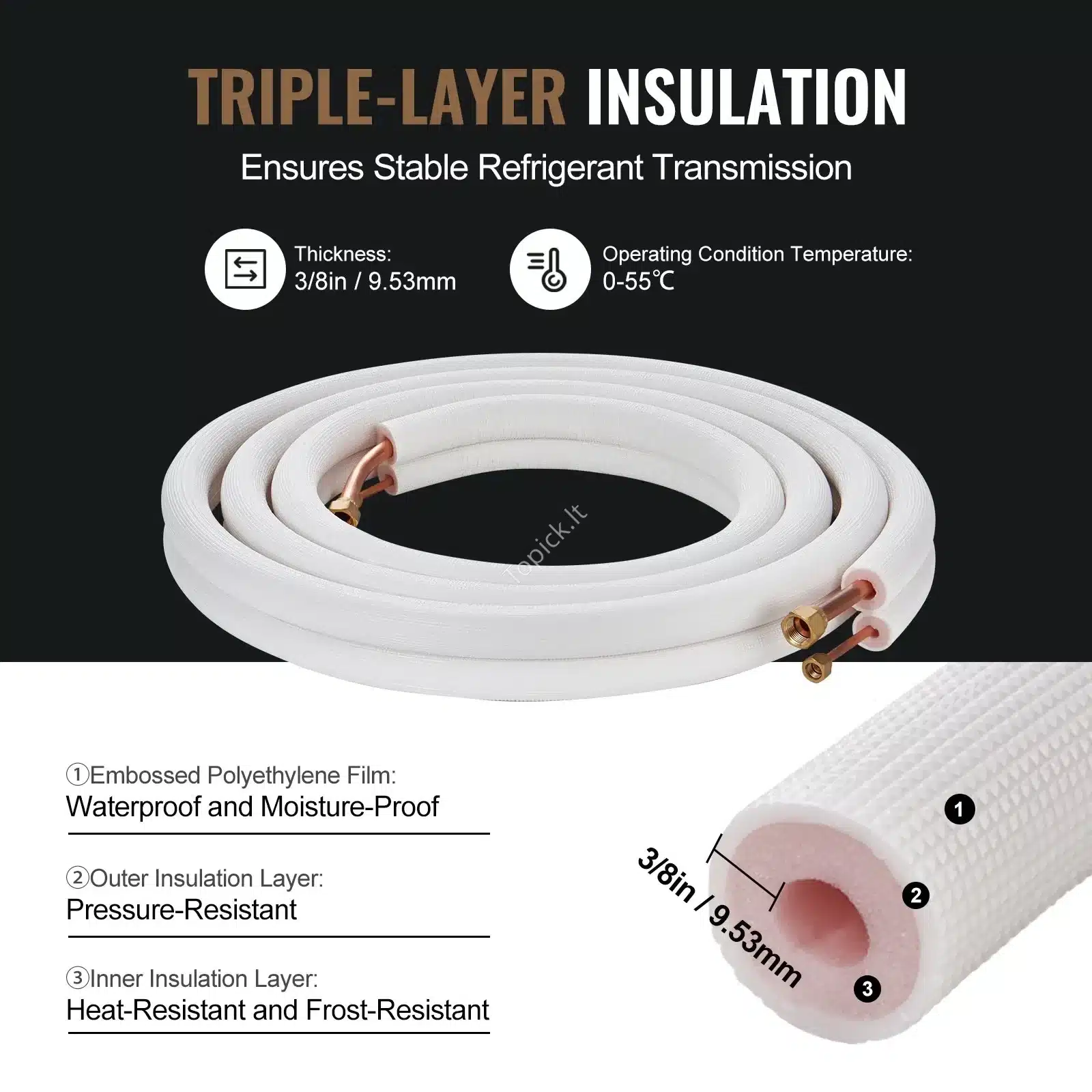 Ieškai patikimo ir optimalaus ilgio vamzdyno savo naujam Mini Split kondicionieriui? Šis 4.88 metro ilgio vario vamzdyno komplektas yra sukurtas vidutinio galingumo Split sistemoms (nuo 12000 iki 18000 BTU) ir turi visus reikalingus priedus, kad montavimas būtų kuo paprastesnis ir greitesnis.