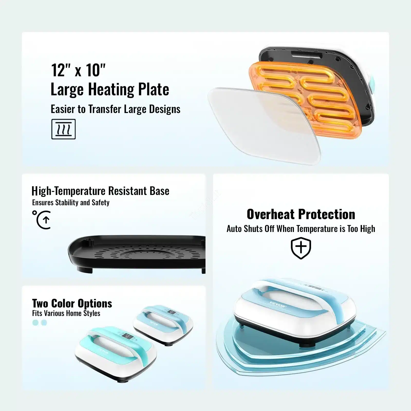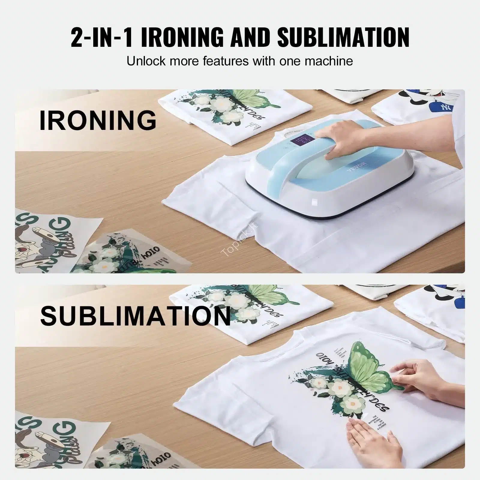 - Universalumas: Gali būti naudojamas ne tik kaip sublimacijos įrenginys, bet ir kaip lygintuvas drabužių lyginimui.