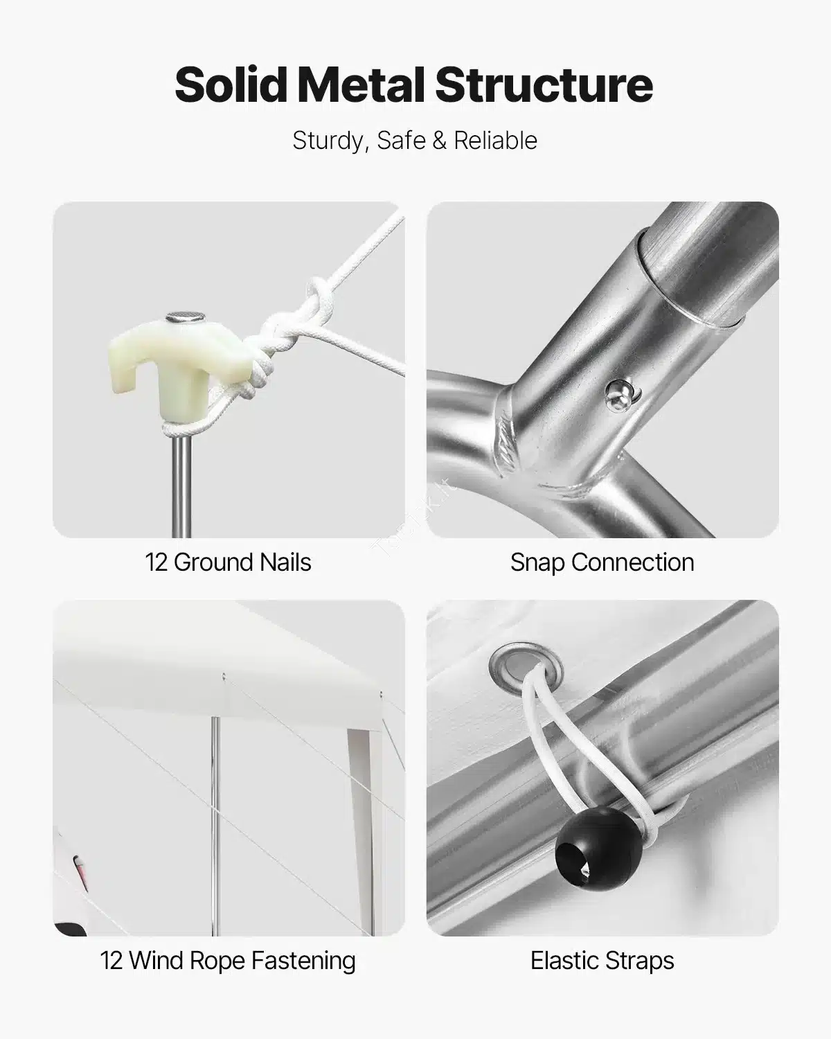 🚗 Sukurtas tam, kad jūsų automobilis, motociklas ar kita technika būtų patikimai apsaugota nuo saulės, lietaus, sniego ir dulkių. Tentą sudaro 305 cm (plotis) × 609 cm (ilgis) × 287 cm (aukštis) konstrukcija su tvirtu cinkuoto plieno rėmu, skirta lengvai surenkamai ir mobiliai naudoti lauke.