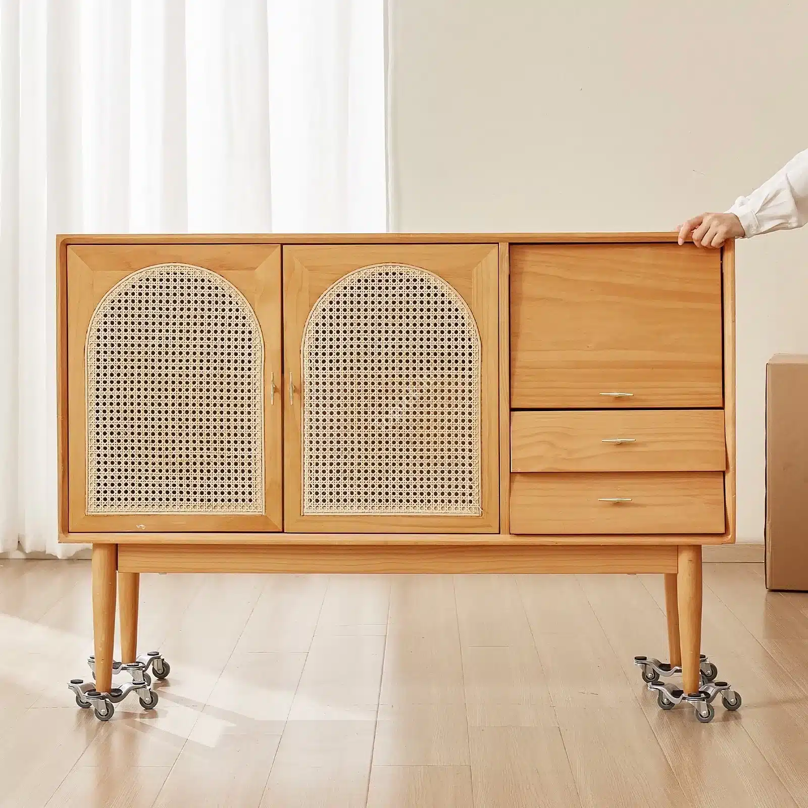 Šis mobilus baldų vežimėlis su 3 ratukais sukurtas tam, kad baldų, buitinės technikos ar kitų sunkių daiktų perkėlimas būtų lengvesnis, saugesnis ir efektyvesnis. Jis gali atlaikyti iki 200 kg apkrovą, todėl puikiai tinka tiek sandėliuose, tiek dirbtuvėse, tiek logistikos centruose.
