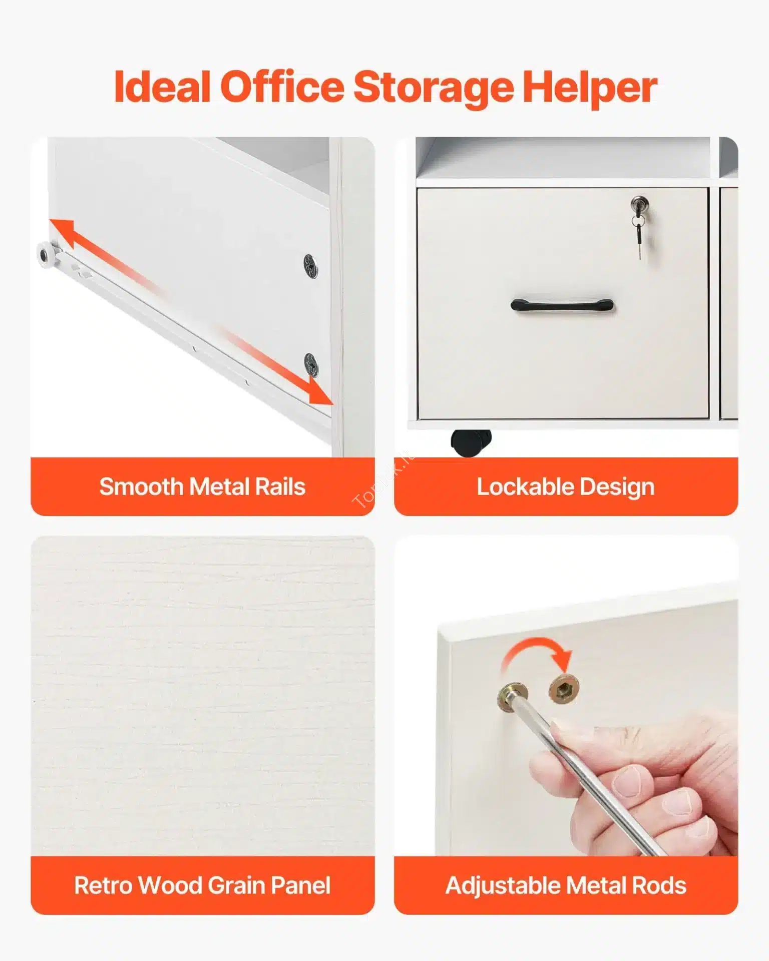 - Puiki Organizacija: Pamiršk netvarką! Spintelė suprojektuota taip, kad viskas rastų savo vietą. Ji turi: