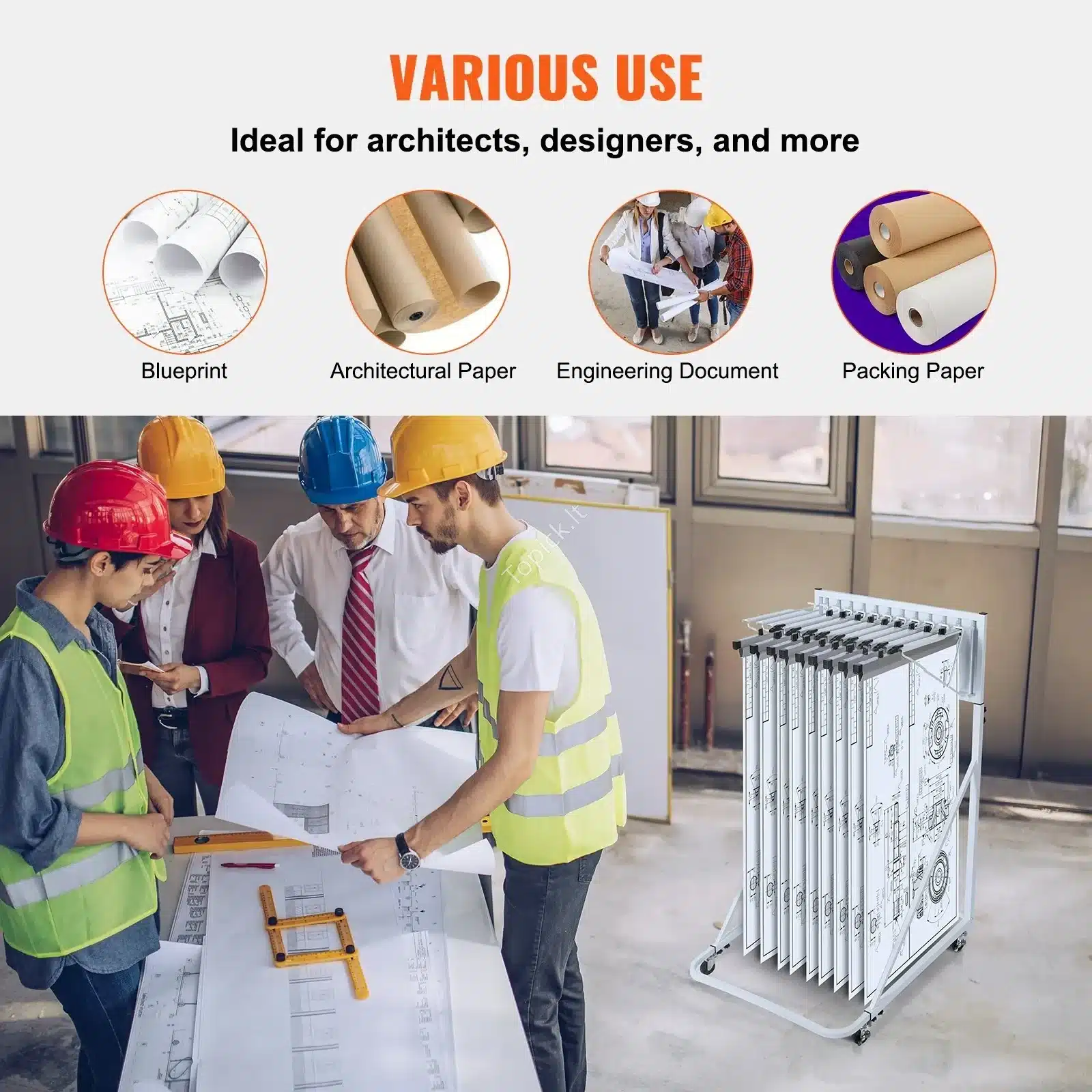 Tai idealus pasirinkimas architektų studijoms, inžinerijos įmonėms, dizaino biurams, mokykloms ar net meno dirbtuvėms – visur, kur reikia saugiai ir tvarkingai laikyti didelius popierius.