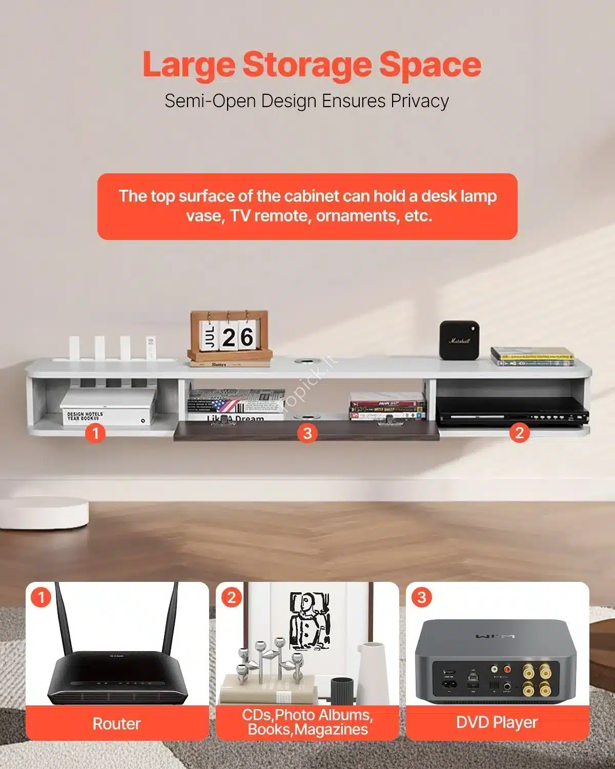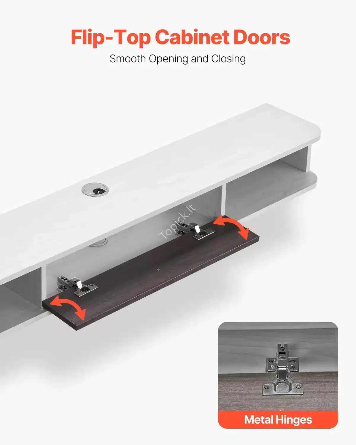 - Laidų Slėptuvė: Daugiau jokios netvarkos! Spintelė sukurta specialiai laidų ir prietaisų valdymui – yra specialios angos laidams išvesti ir netgi vieta maršrutizatoriui (routeriui) paslėpti, kad jo signalas būtų stiprus, o akis neerzintų.