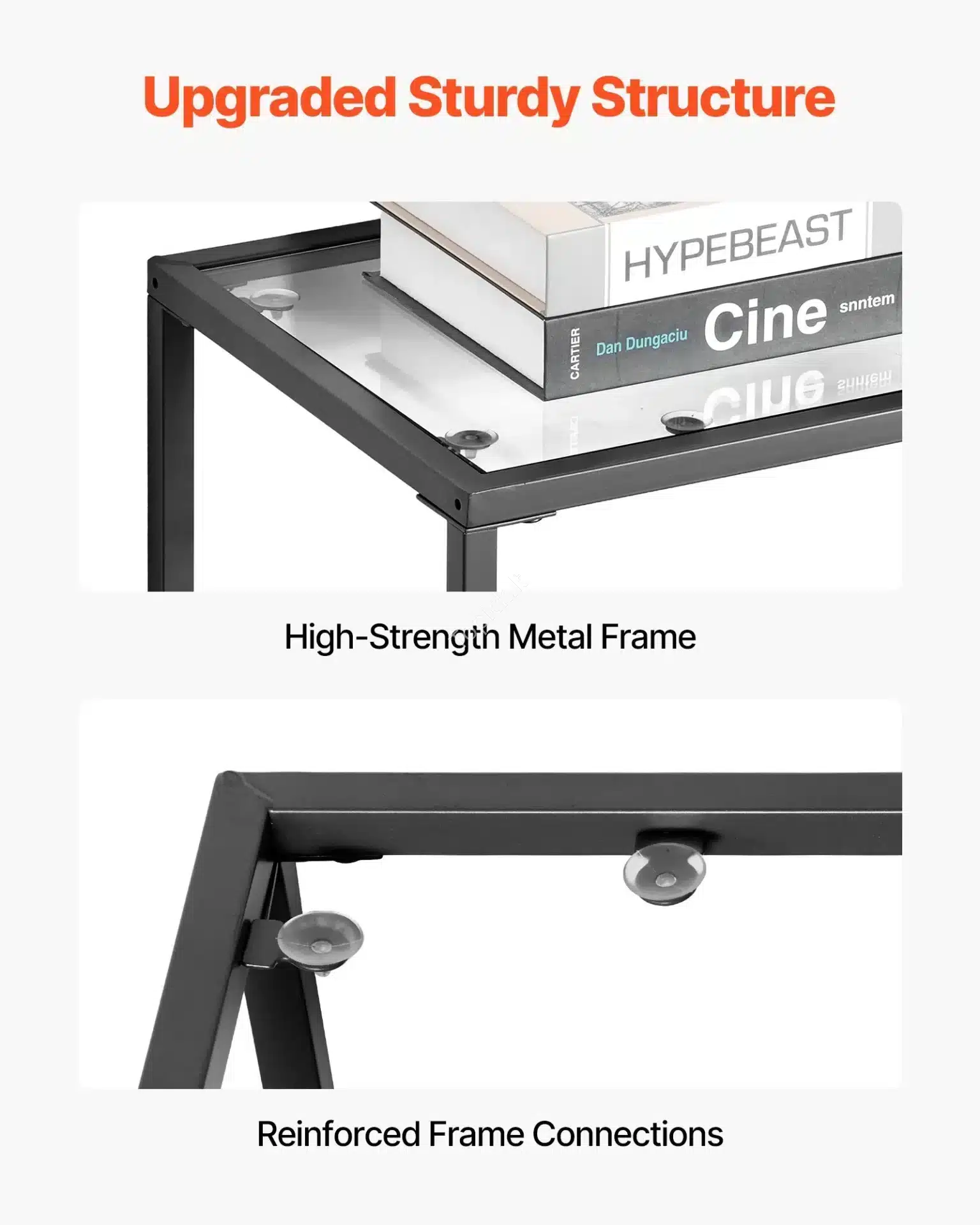 - Dvi Grūdinto Stiklo Lentynos: Staliukas turi du lygius – viršutinį ir apatinį – pagamintus iš 5 mm storio, tvirto grūdinto stiklo. Tai suteikia papildomos vietos daiktams laikyti ar dekoracijoms eksponuoti.