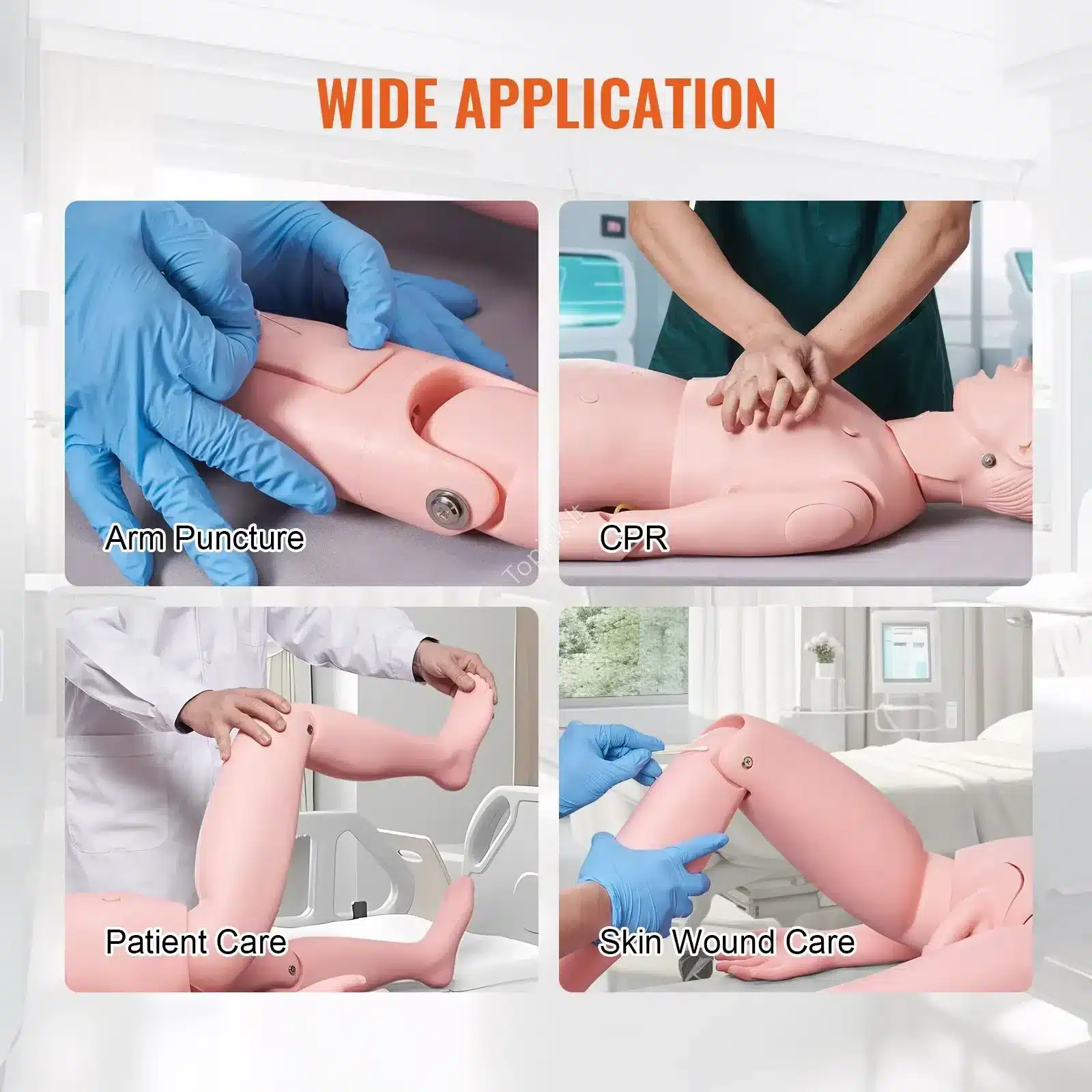 - ✨ Bazinė Priežiūra: Praktikuokite kasdienę paciento priežiūrą: lovos keitimą, maudymą, šukavimą, burnos higieną, judinimą ir persirengimą. Lankstūs sąnariai leidžia manekenui priimti realistiškas pozas, simuliuojant gulinčio paciento priežiūrą.