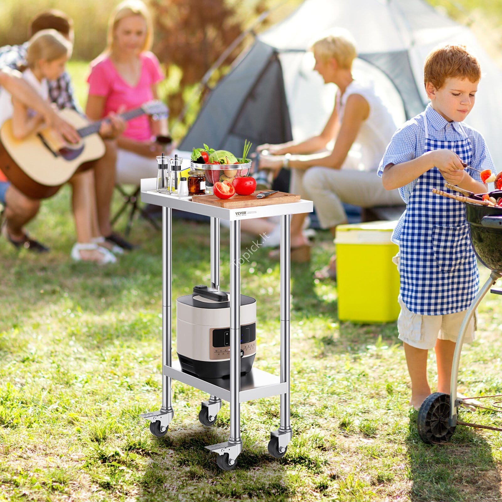 - Stabilus ir patvarus: pagerintas 0,8 mm storis, šis stalas yra tvirtas ir patvarus. Viršutinė lentyna gali išlaikyti iki 300 svarų (136 kg), o apatinė – iki 200 svarų (91 kg). Tai suteikia daug vietos jūsų reikmenims ir lengvai susidėsite mėgstamus ingredientus.