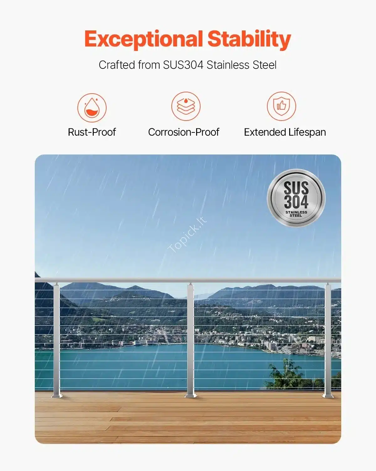 - Atsparumas ir ilgaamžiškumas: Pagamintas iš aukščiausios kokybės SUS304 nerūdijančio plieno, atsparus korozijai, rūdims ir intensyviam naudojimui. Tinka net atšiaurioms oro sąlygoms (nerekomenduojama naudoti pakrantės zonose).