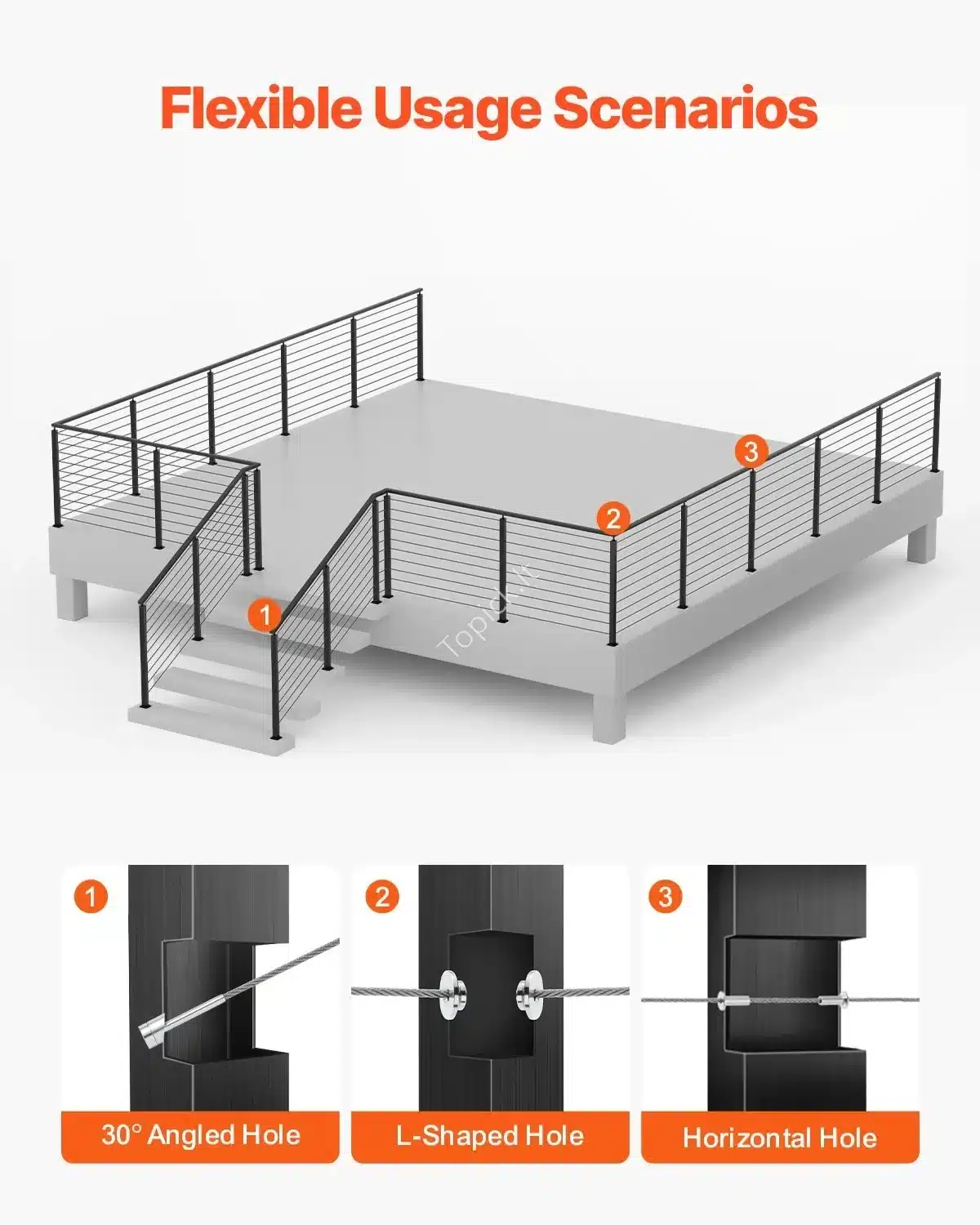 Nerūdijančio plieno trosų turėklai, turėklų stulpas, laiptų turėklai, balkono turėklai (914 x 25,4 x 50,8 mm)