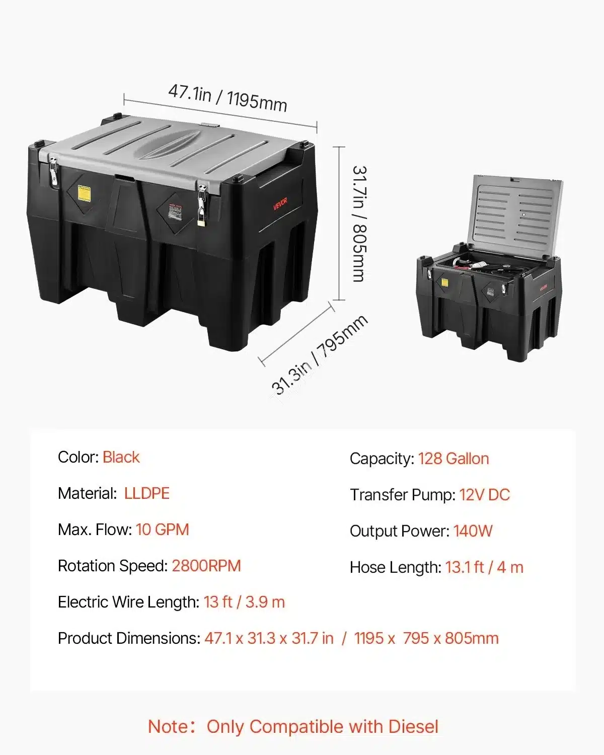Nešiojamas dyzelino bakas – talpykla, juodas, 484.5 L ⛽