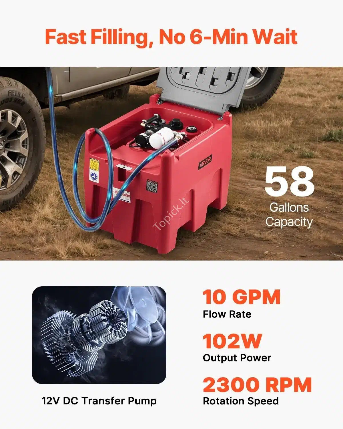 - Siurblys: 12 V perkėlimo pompa su galingu 45 L/min srautu.
