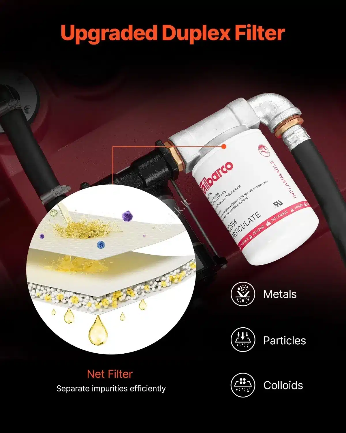 - Švarus kuras: Patobulintas dvigubas filtras apsaugo nuo didelių ir mažų priemaišų, užtikrindamas švarų kurą.