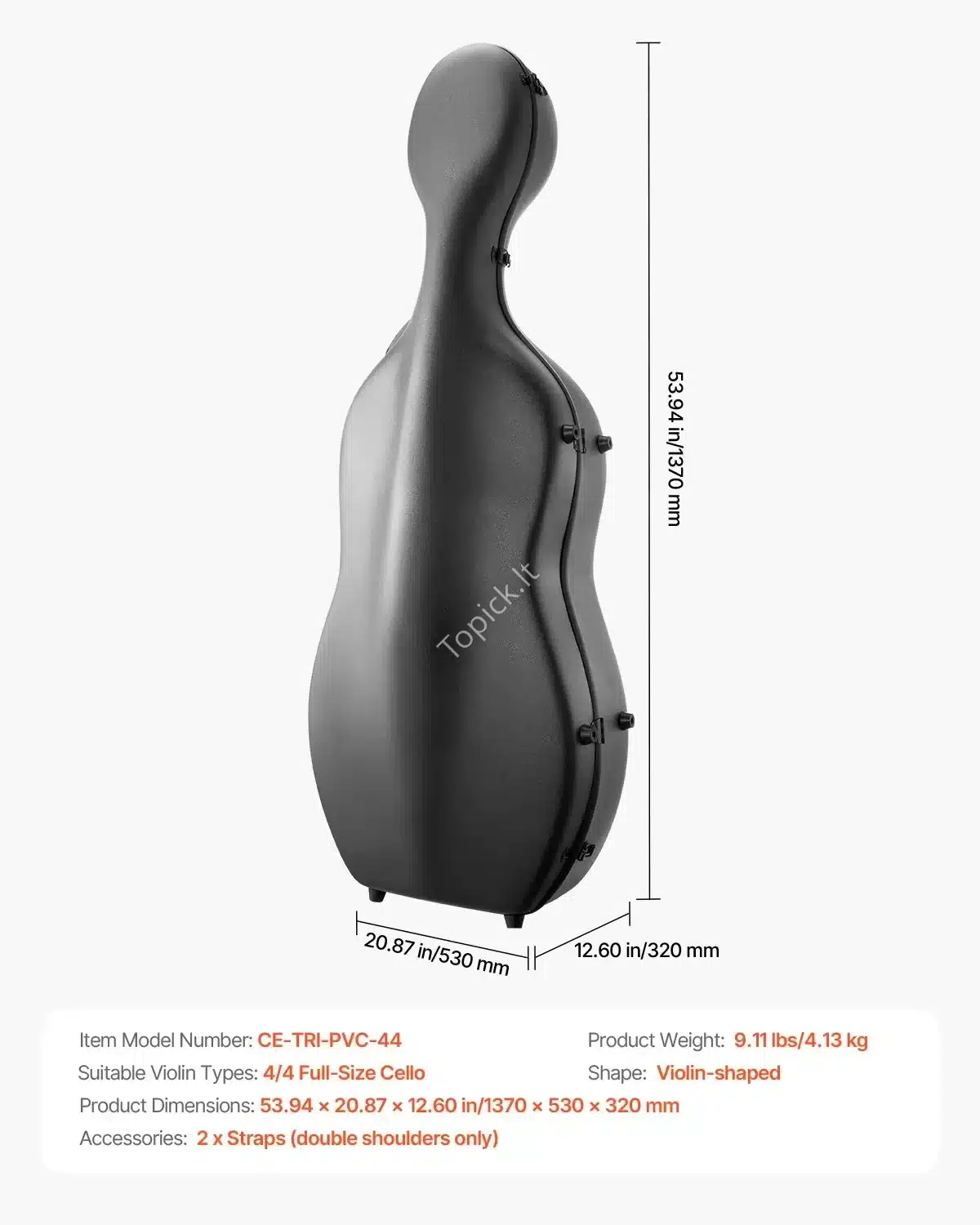 Ieškote patikimos apsaugos savo violončelei? Šis lengvas, bet tvirtas dėklas yra puikus pasirinkimas. Sukurtas atsižvelgiant į muzikantų poreikius, jis apsaugos jūsų instrumentą nuo įbrėžimų, smūgių ir drėgmės keliaujant į repeticijas, koncertus ar tiesiog saugant namuose.