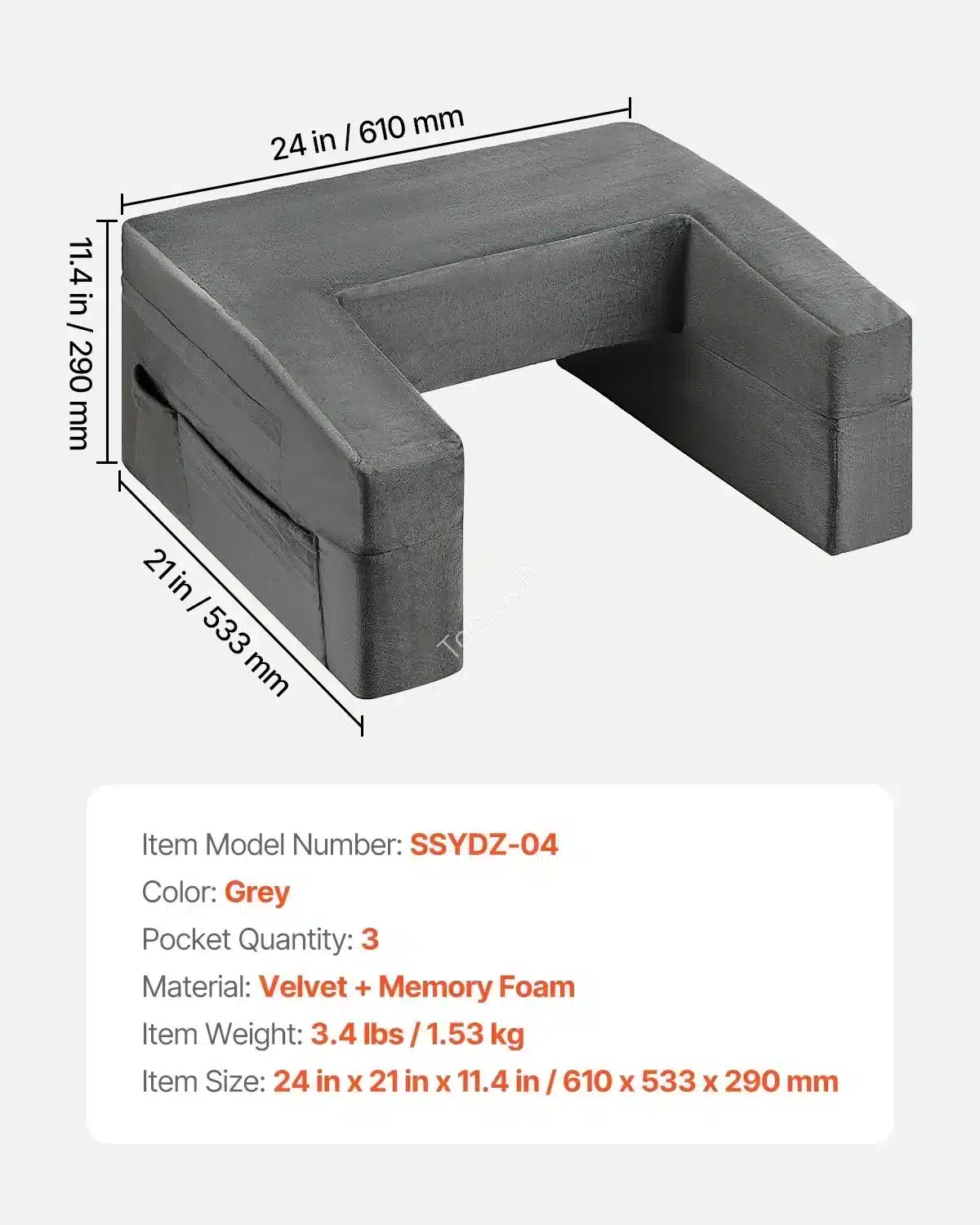 Ergonomiška Skaitymo Pagalvė su Atminties Putomis ir Staliuku: Sofa Lovai, Darbui, Žaidimams. 61 x 53.3 x 29 cm, Pilka, Skalbiamas Užvalkalas