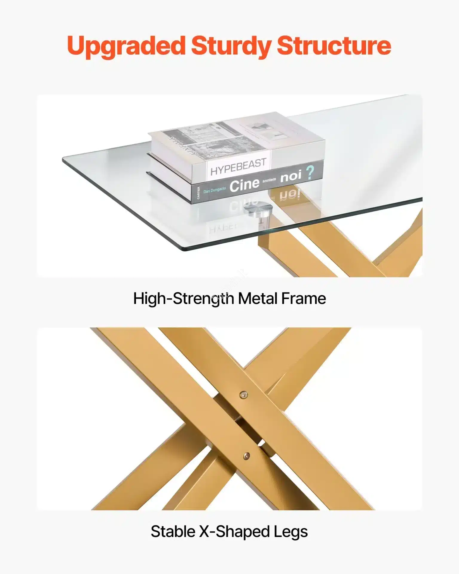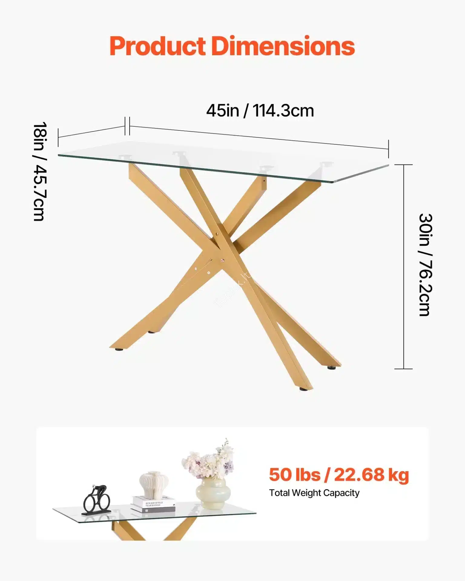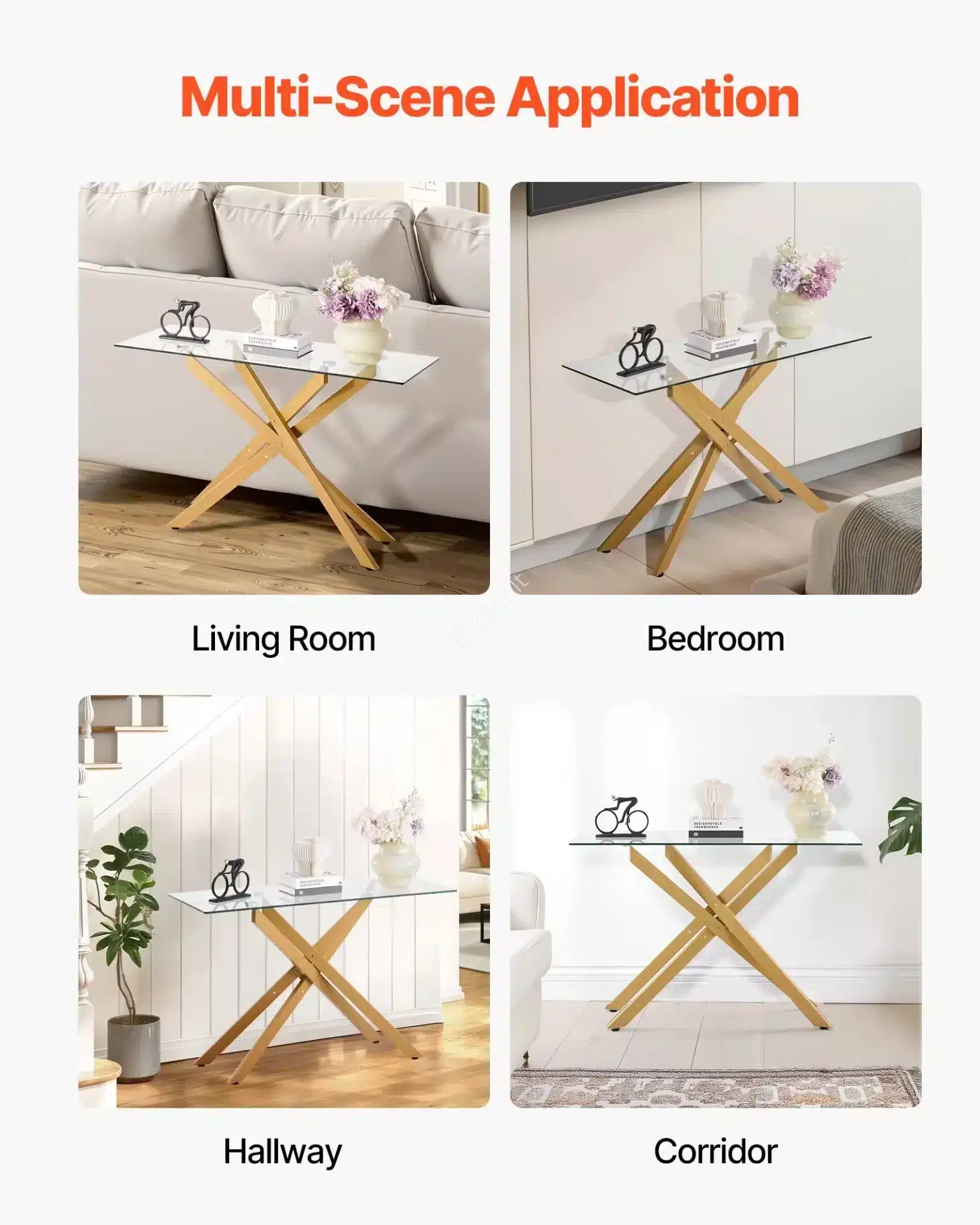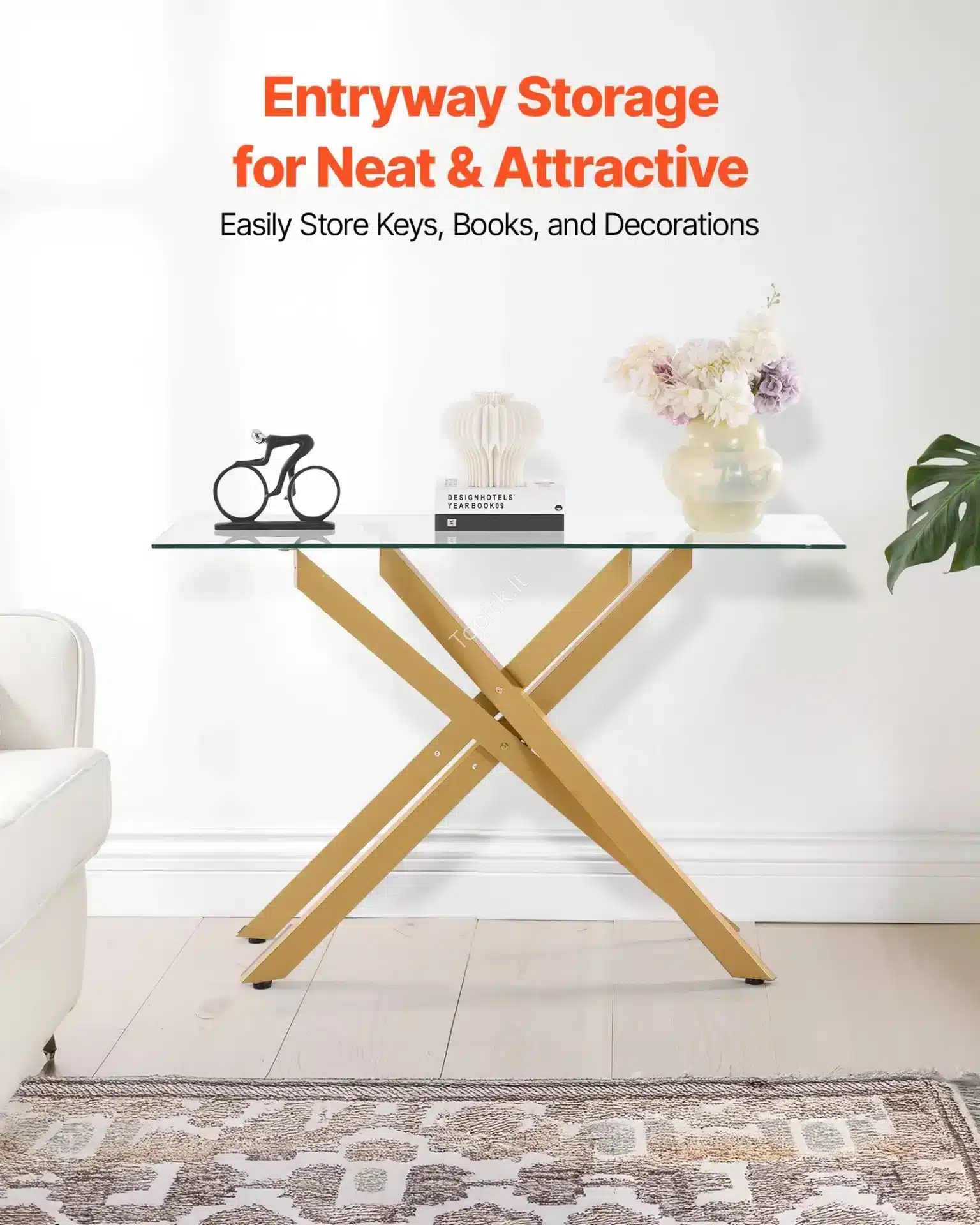 Prabangus Siauras Konsolinis Staliukas, Aukso Spalvos Metalas ir Grūdintas Stiklas. 114,3 x 45,7 x 76,2 cm. Modernus Baldas Prieškambariui / Svetainei