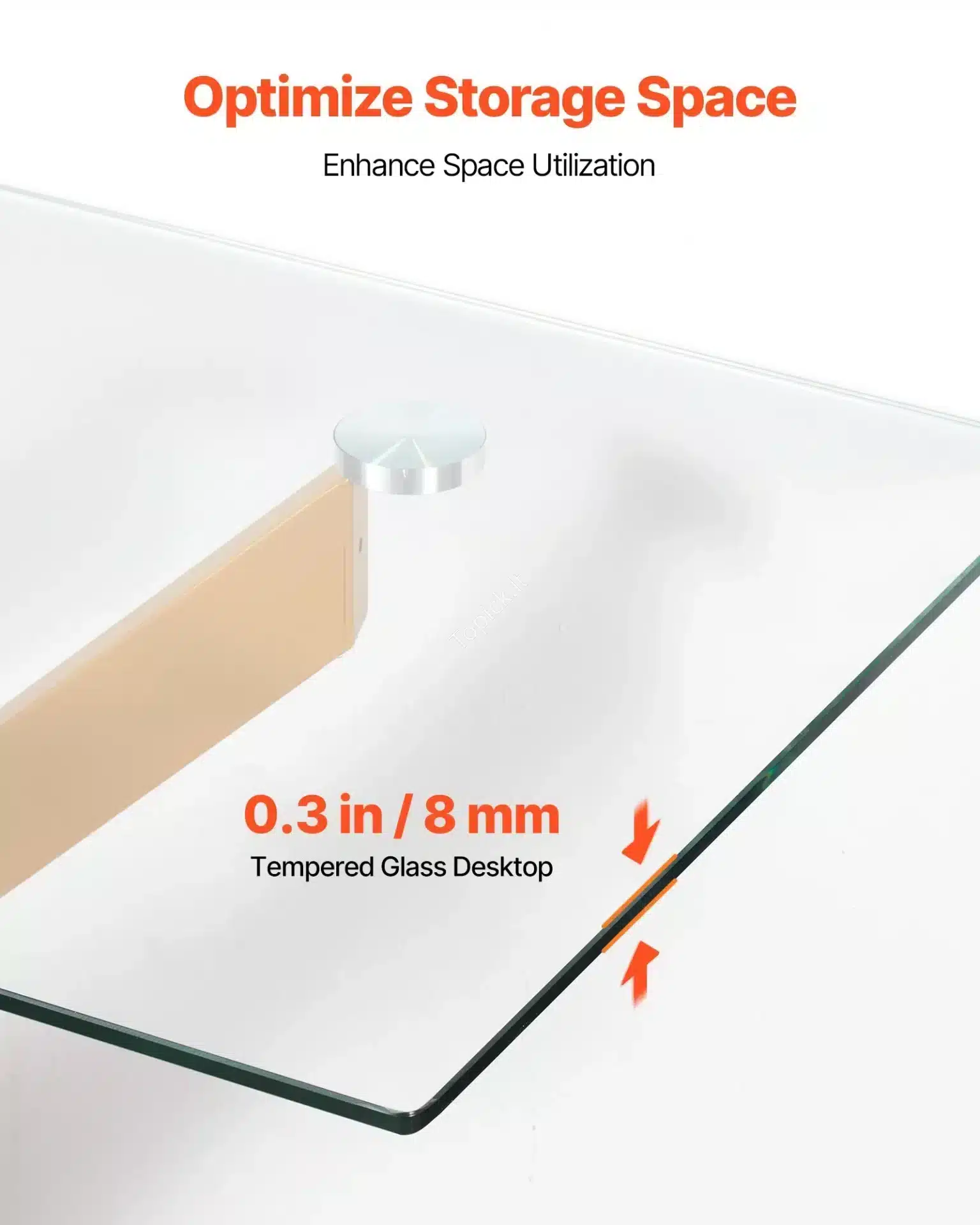 • Elegantiškas Stiklinis Stalviršis: 8 mm storio grūdintas stiklas yra ne tik skaidrus ir vizualiai lengvas, bet ir itin tvirtas, atsparus dūžiams bei įbrėžimams.