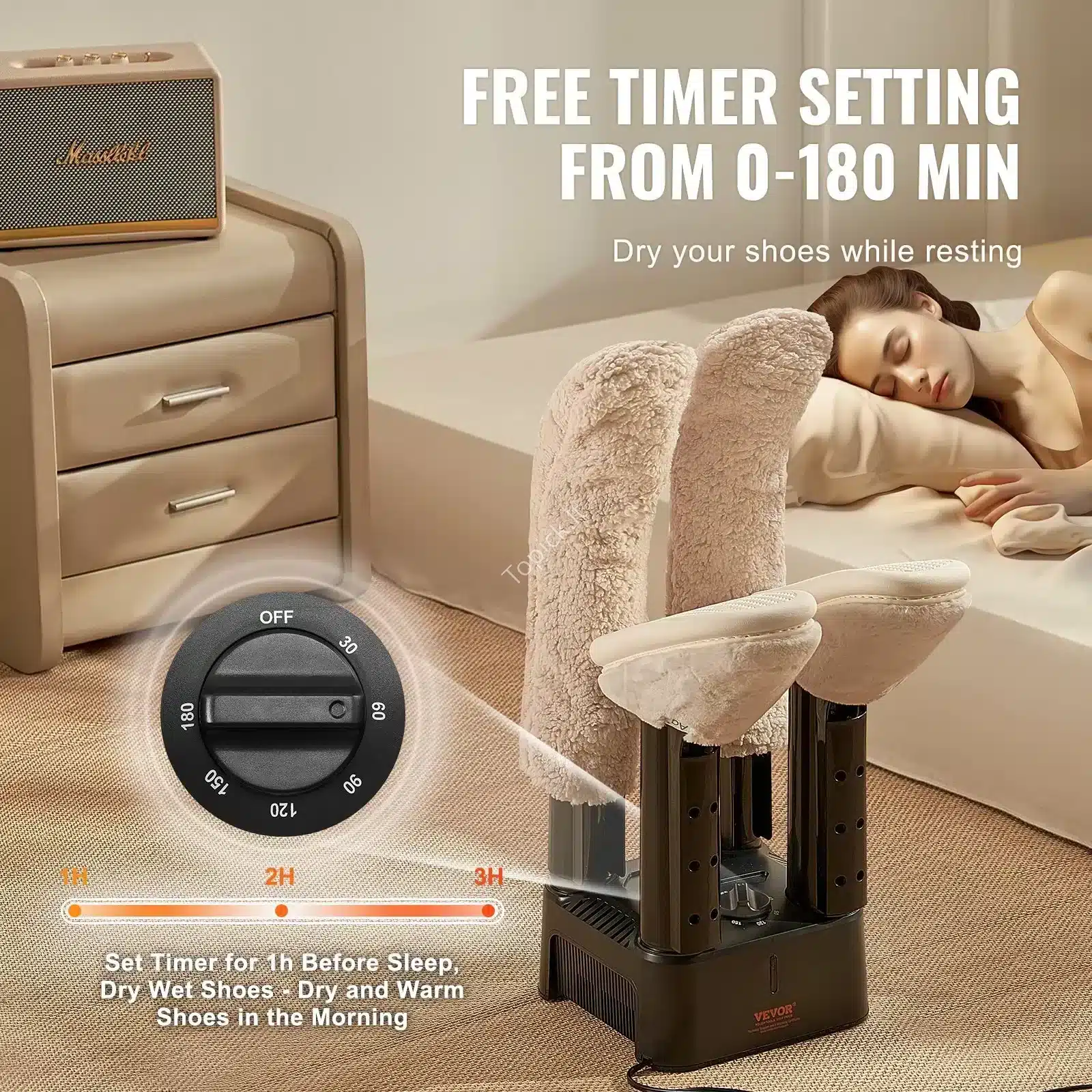 Šis batų organizatorius sukurtas taip, kad saugotų tavo avalynę ir taupytų tavo laiką. Su 200W galia ir 4 nuimamais vamzdžiais, jis gali išdžiovinti 2 poras batų vienu metu per 1–3 valandas (priklauso nuo drėgmės). Dėl 360° šilto oro srauto šiluma pasiekia net tolimiausius pirštų ir kulnų kampelius.