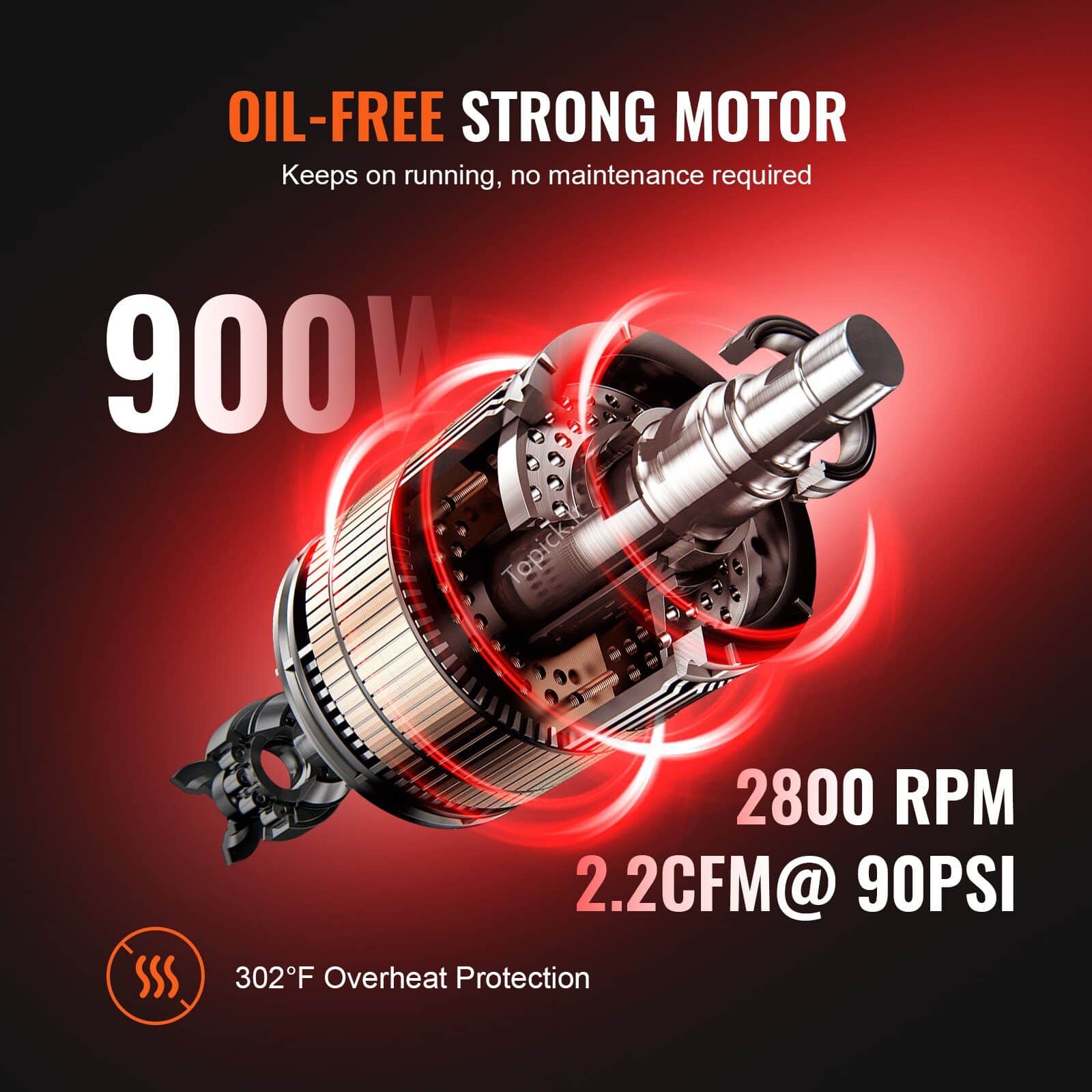 8 l aliumininis „whisper“ oil‑free kompresorius – 900 W, 70 dB, 2800 rpm
