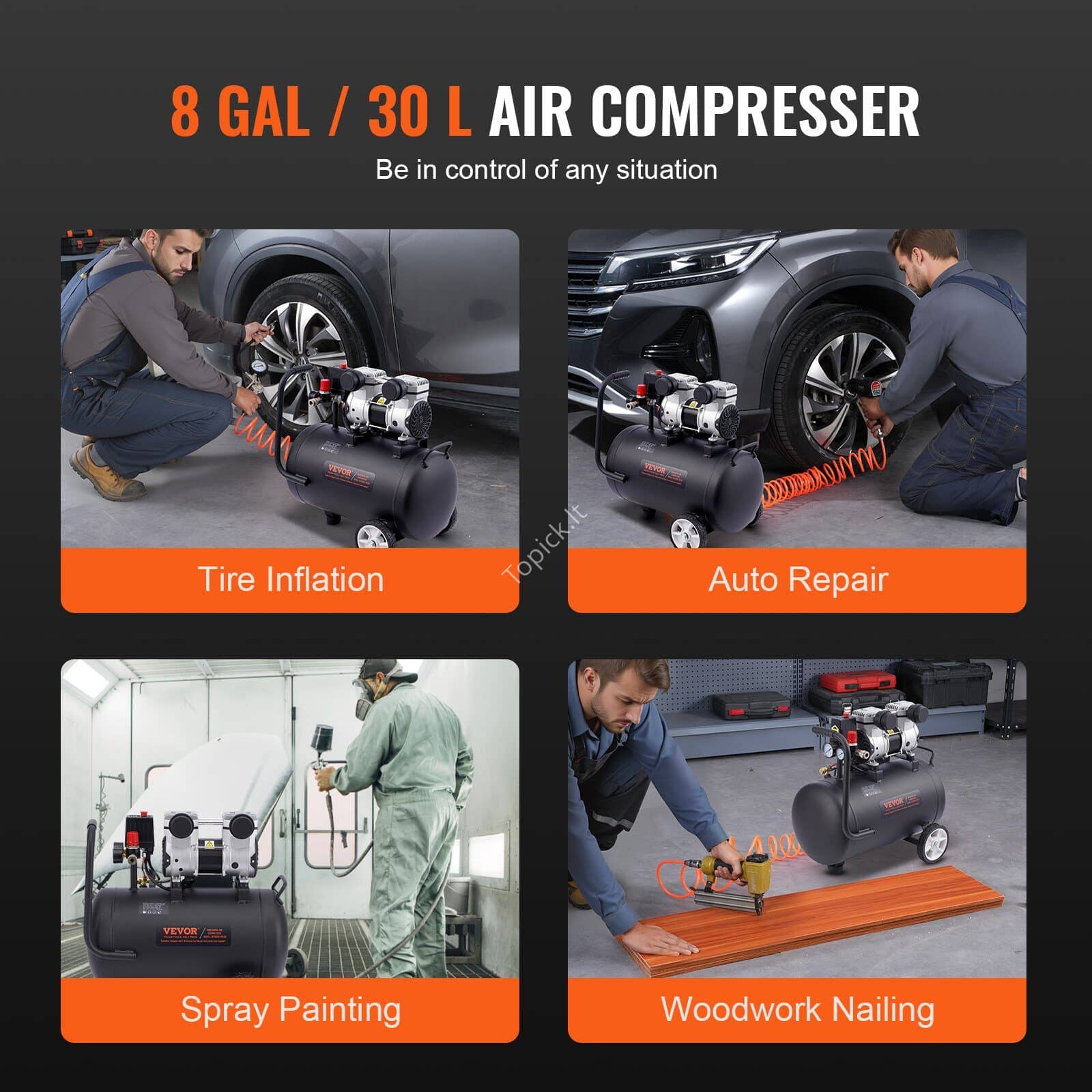 💨 Galingas ir tylus oro kompresorius – puikus pasirinkimas tiek namų dirbtuvėms, tiek automobilių servisui, kai reikalingas galingas, tačiau itin tylus įrenginys. Šis bealyvinis kompresorius išsiskiria savo patikimumu, efektyvumu ir mažesniu triukšmo lygiu – vos 80 dB, todėl idealiai tinka naudoti ir patalpose 🏠🔇.