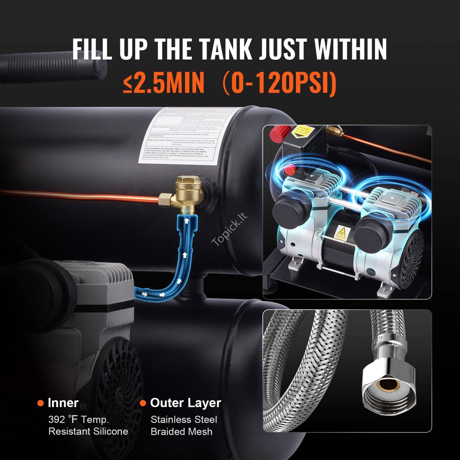 860 W tylus bealyvinis oro kompresorius – 8 L bakas, 120 PSI, 230 V