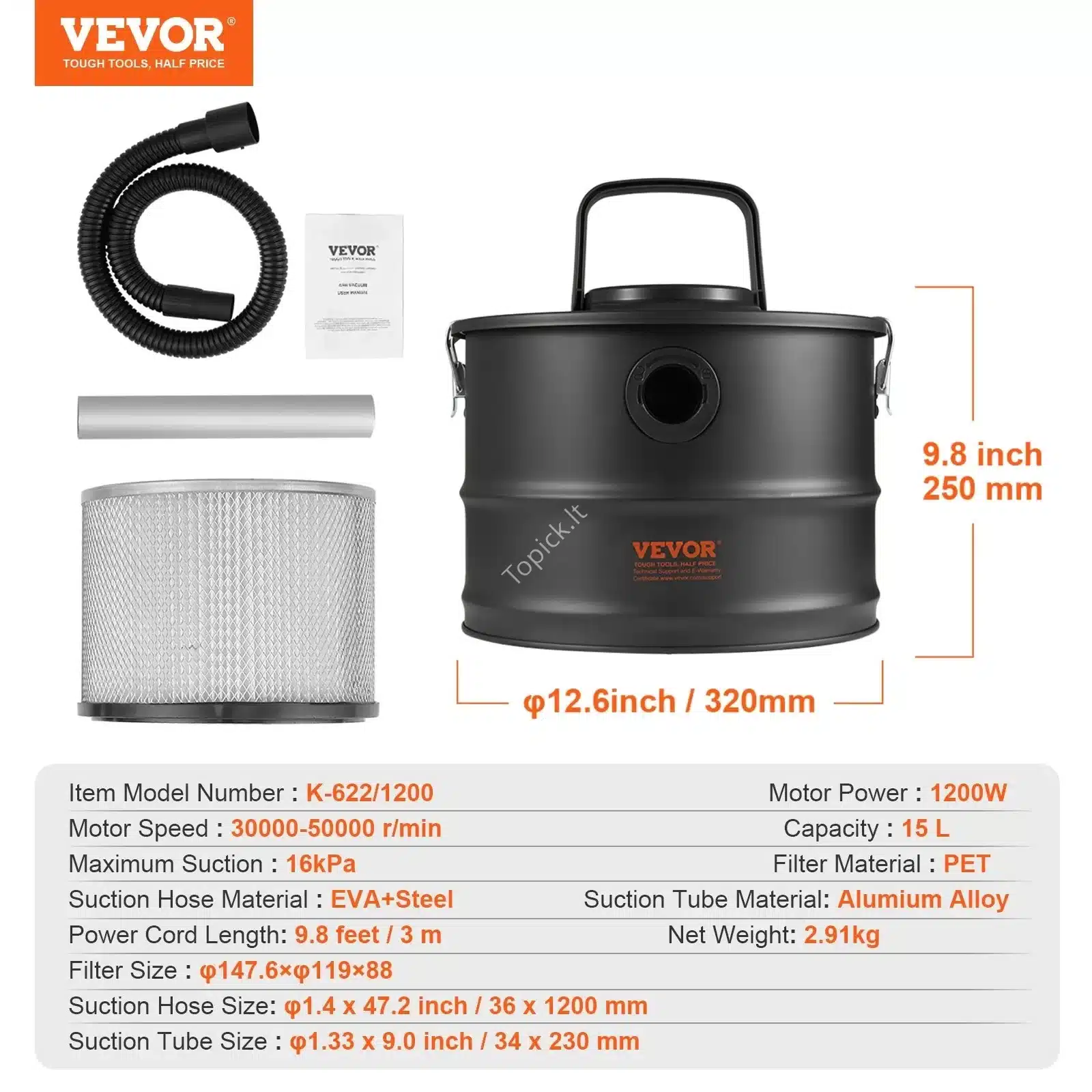 Pelenų – šiukšlių siurblys, 1200W, 15L 💨