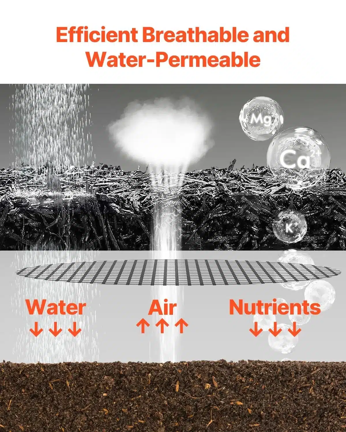 - Piktžolių kontrolė: Efektyviai blokuoja saulės šviesą ir neleidžia piktžolėms prasiskverbti, o jo pralaidi struktūra leidžia vandeniui ir orui pasiekti augalų šaknis.