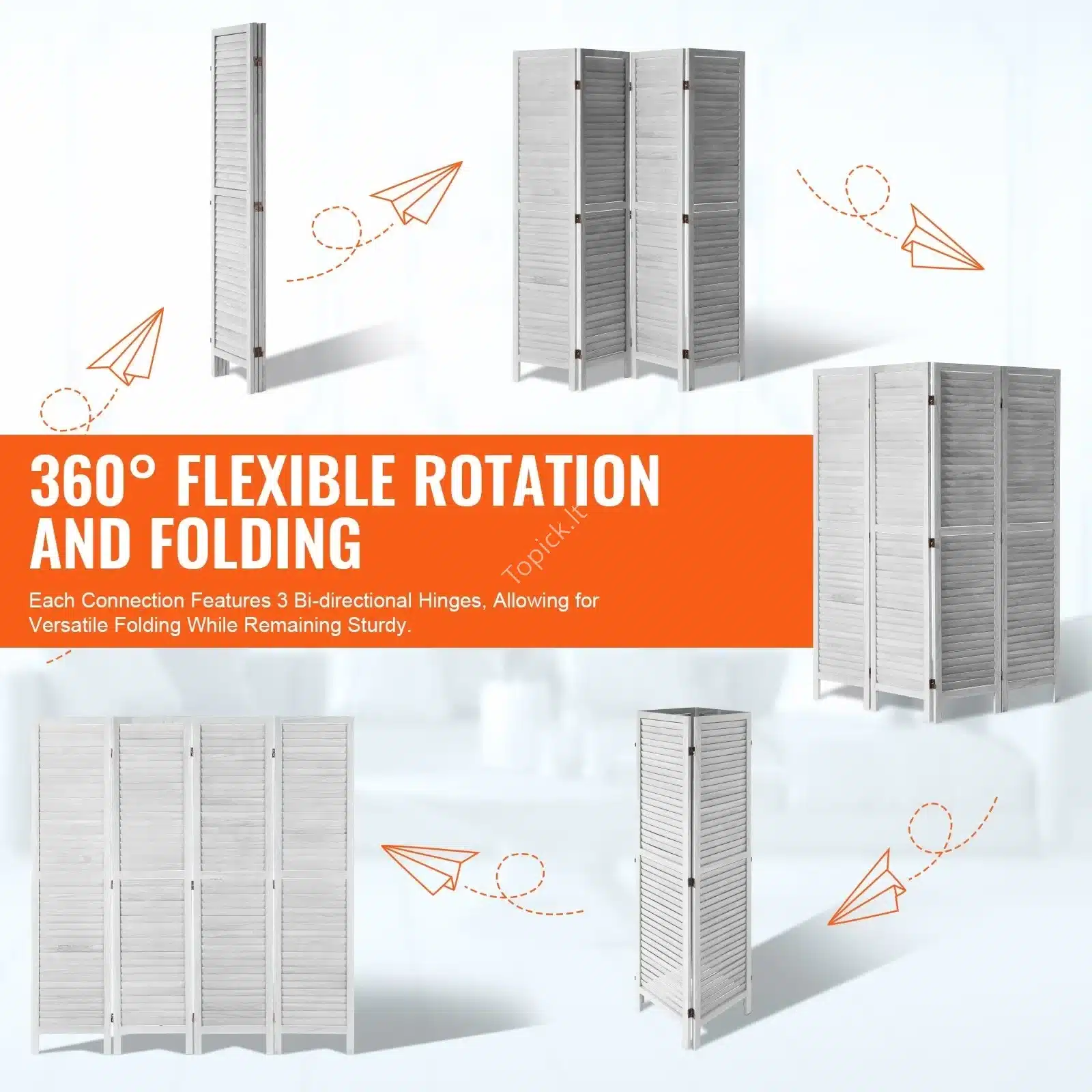 - Patogumas: Dėl tvirtų, dvipusių vyrių, pertvara sukasi 360° kampu ir lengvai sulankstoma, todėl ją paprasta sandėliuoti.