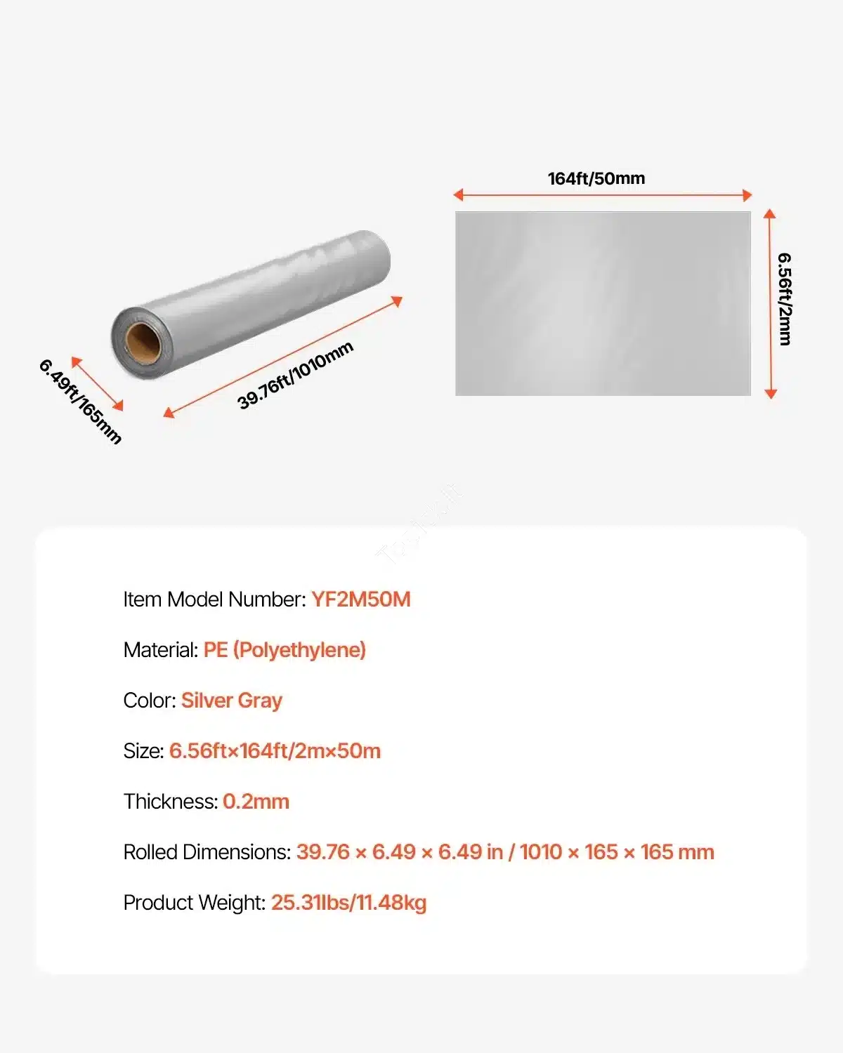 - Medžiaga: Pagaminta iš patvarios polietileno (PE) plėvelės, kurios storis – 0,2 mm (8 mil). Plėvelė yra elastinga, atspari plyšimui ir senėjimui.