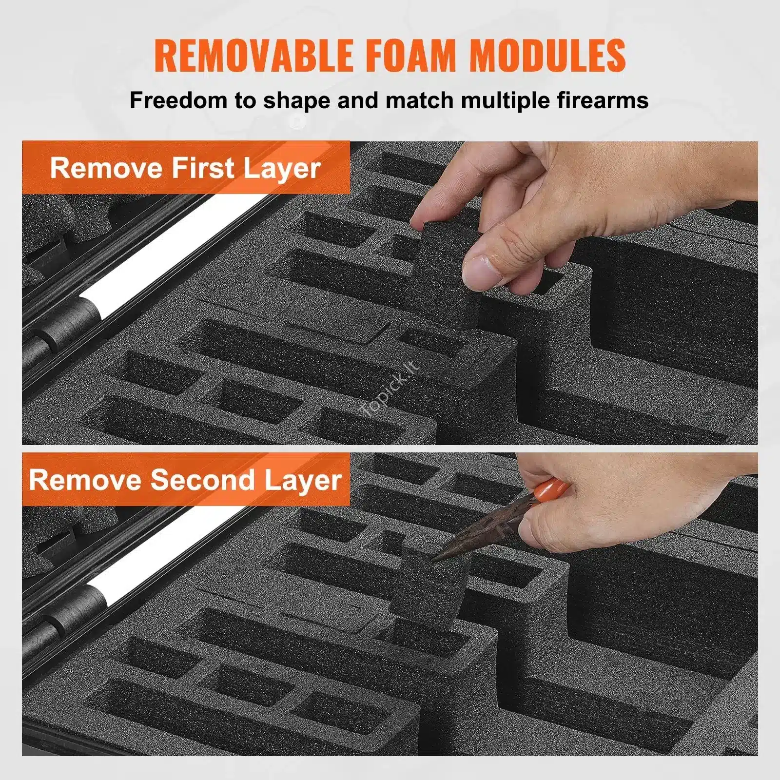 - Tvirtumas ir ilgaamžiškumas: Pagamintas iš tvirto PP plastiko, o vidus išklotas reguliuojamo aukščio ir ilgio XPE putų įdėklais, apsaugančiais nuo subraižymų.