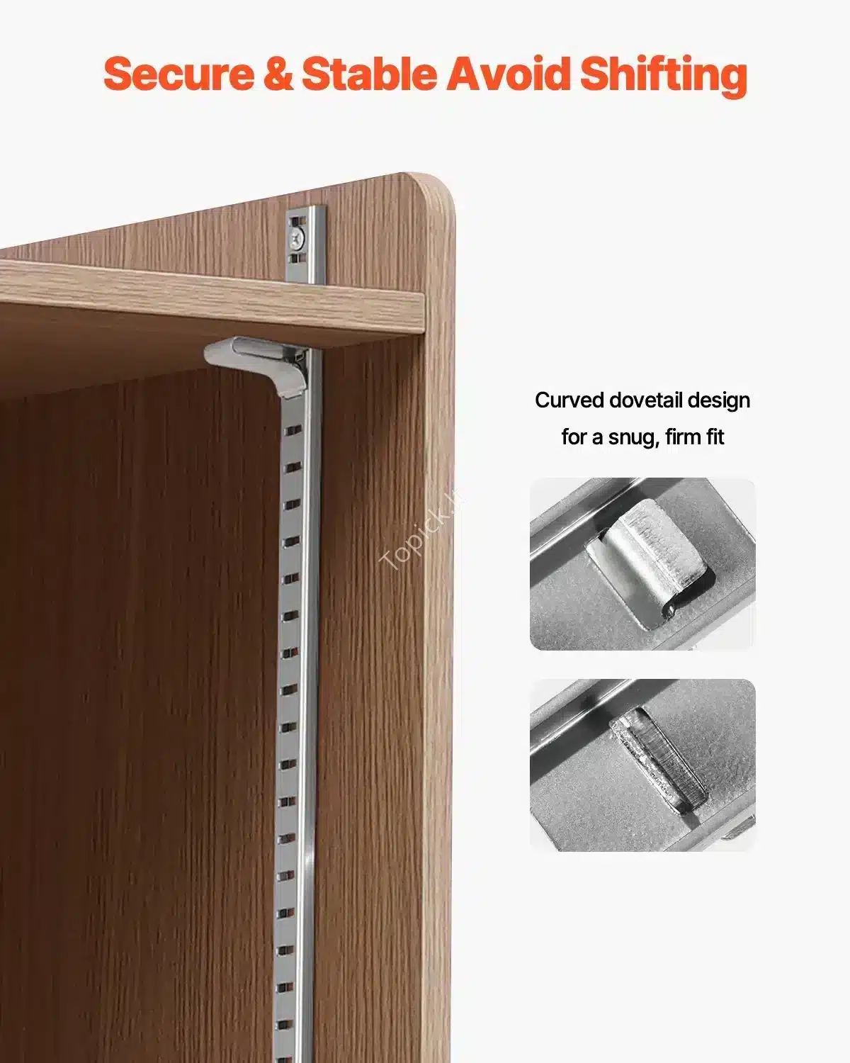 - Universalus Panaudojimas: Tinka palaikyti lentynas iš medžio, metalo ar stiklo. Puikiai dera su horizontalaus lizdo pilasterių juostomis.