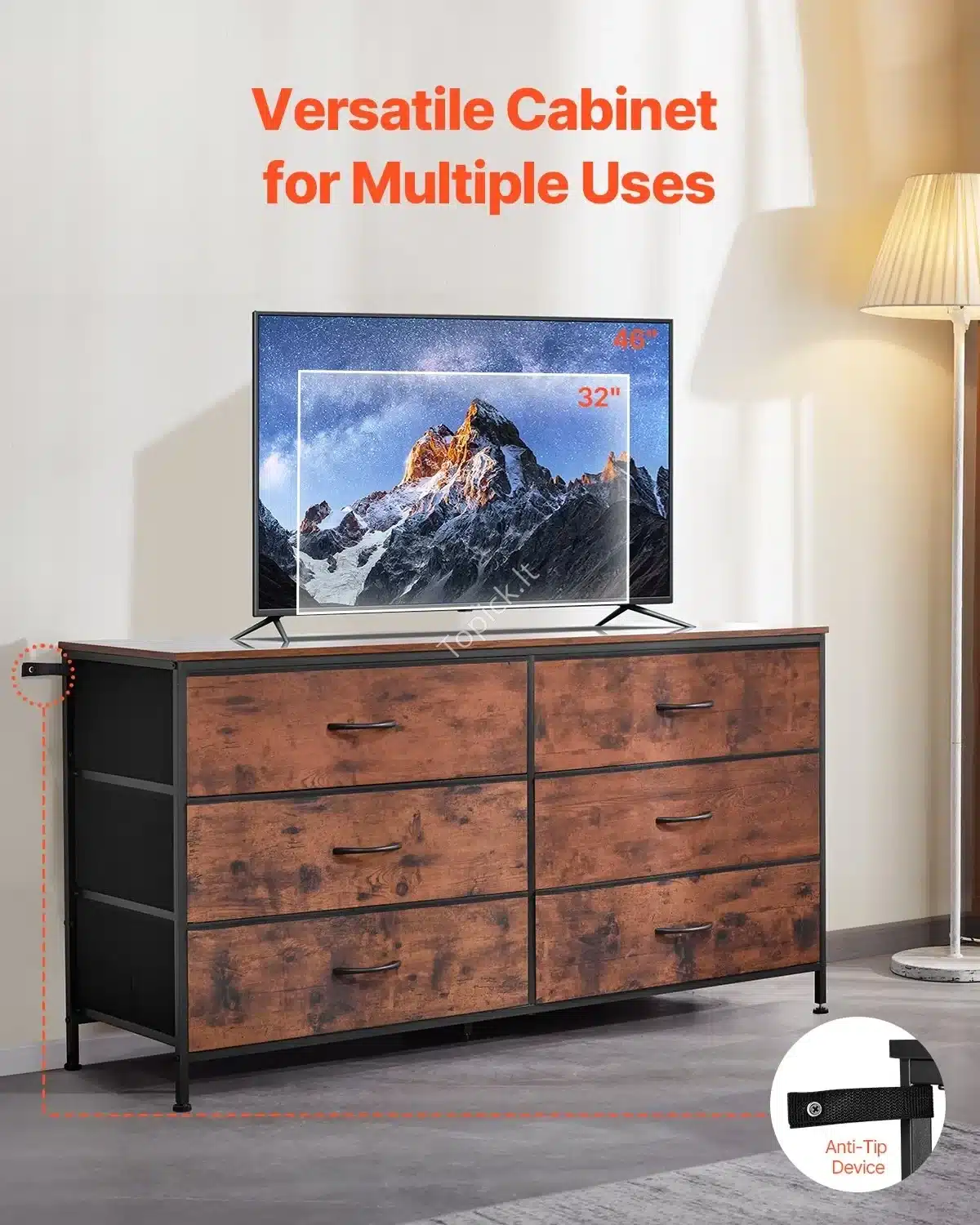 Plati Komoda su 6 Audinio Stalčiais, Ruda, 130 x 39 x 69 cm, TV Stovas, Industrialus Stilius