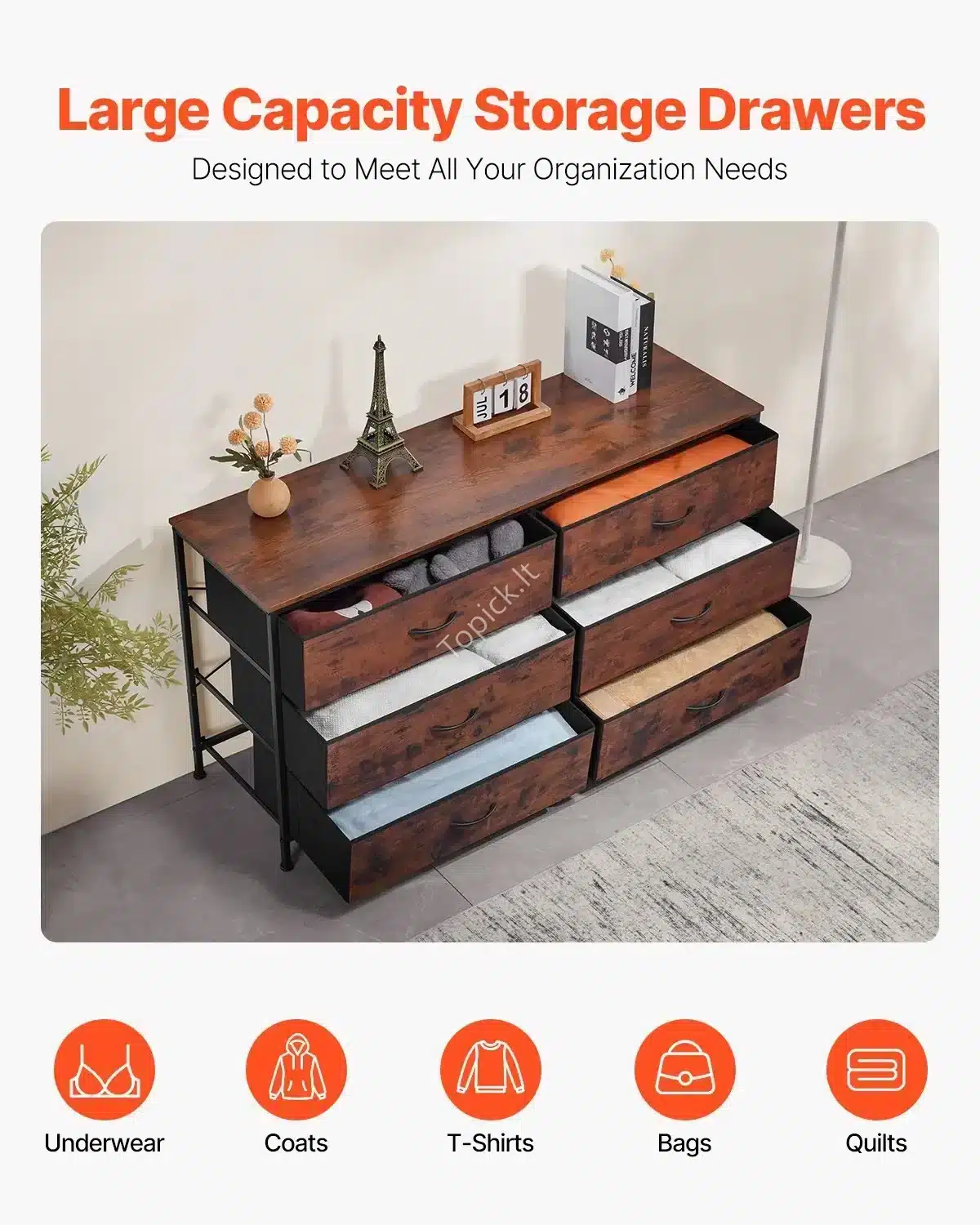 - 6 Audinio Stalčiai: Stalčiai pagaminti iš patvaraus, orui pralaidaus audinio, tad jie idealiai tinka rūbams, patalynei ar žaislams laikyti. Patogu ir lengva valyti.