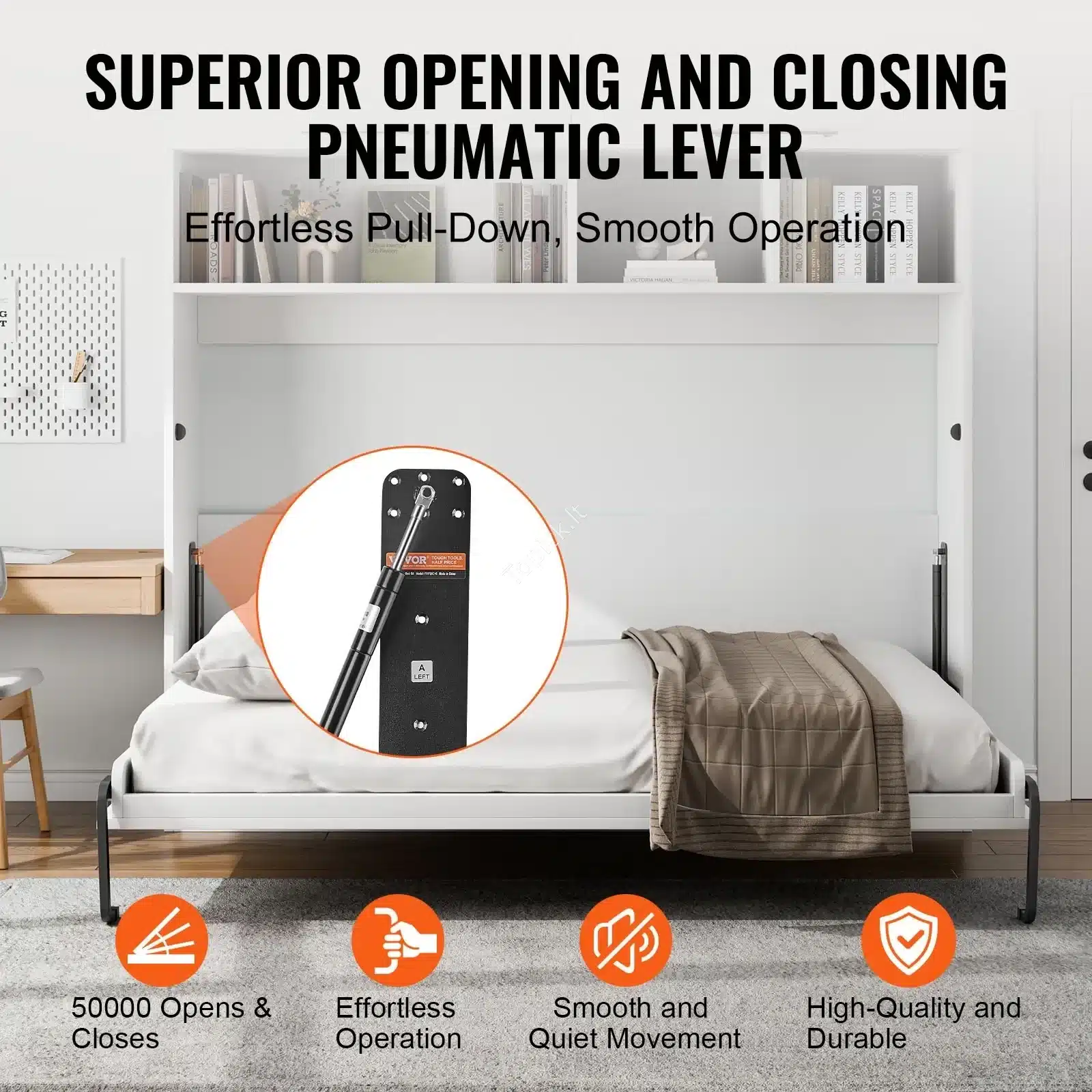 Šis spintos lovos mechanizmas yra „pasidaryk pats“ komplektas, skirtas taupyti erdvę, ypač tose vietose, kur jos trūksta.