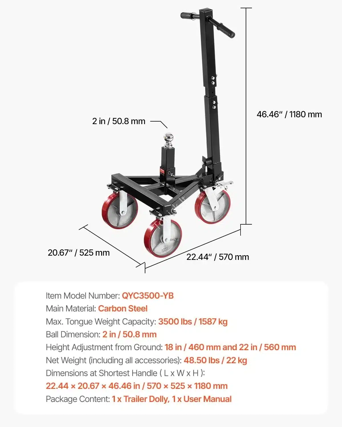 - Universalumas: Turi 20 cm skersmens PU ratukus ir universalius kėlimo antgalius, leidžiančius lengvai manevruoti ant įvairių paviršių.