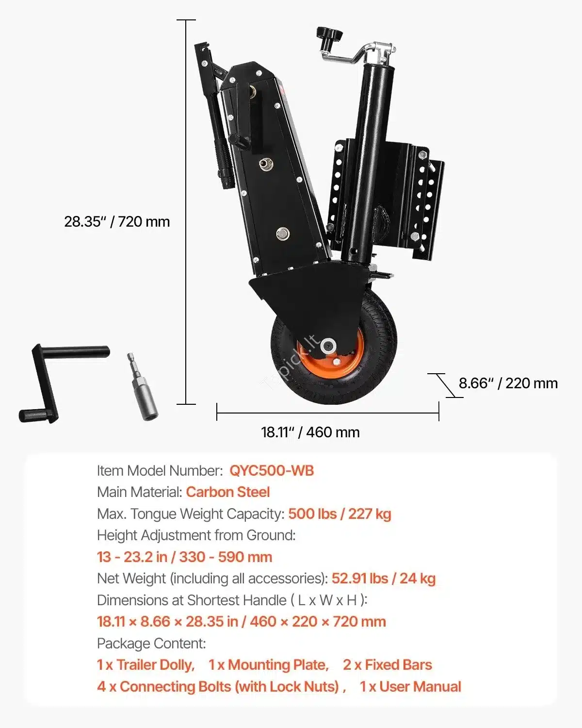 Priekabos manevravimo įrenginys, 227 kg / 33-59 cm 🚚