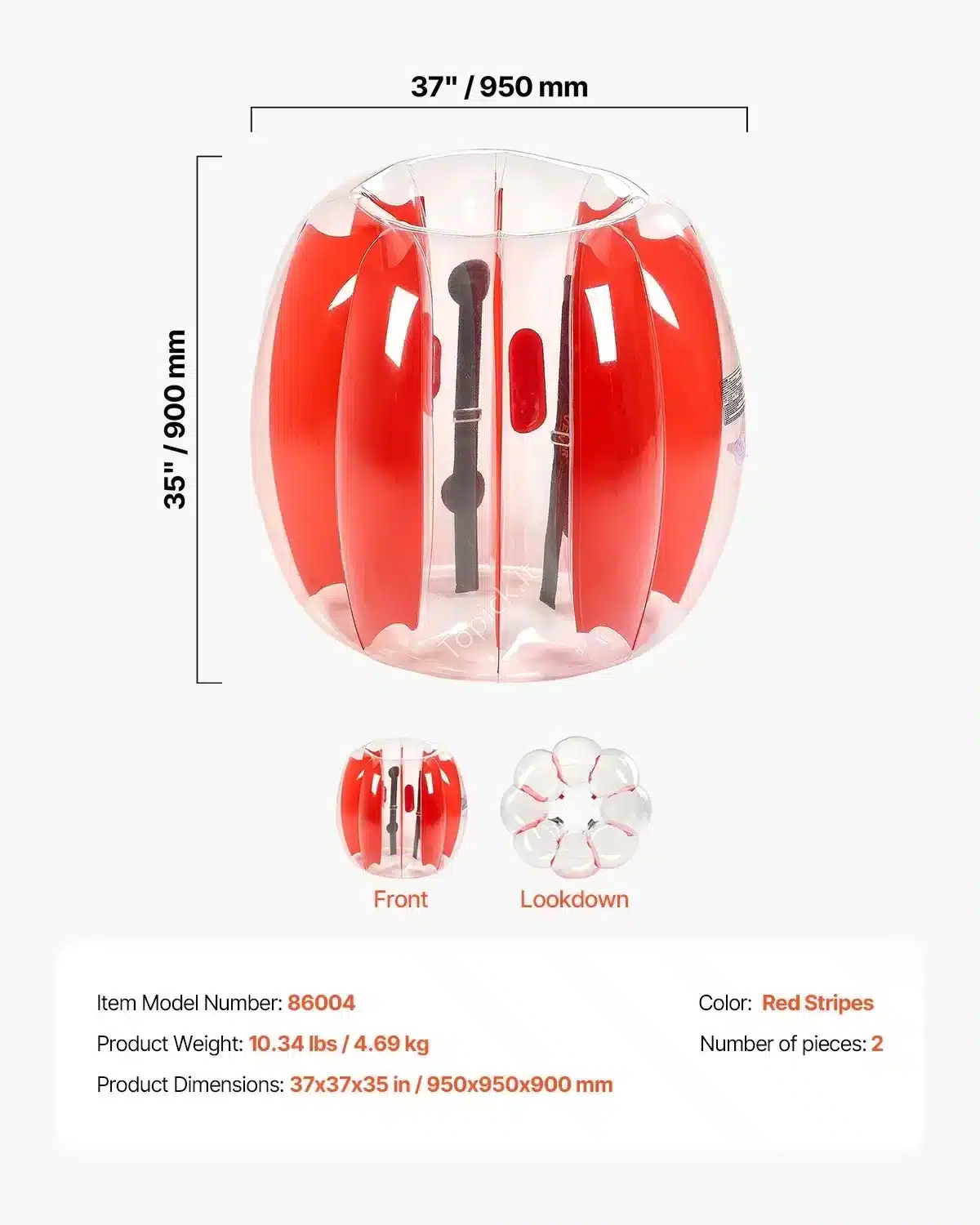 Pasiruošk linksmam bumpsiukų futbolo chaosui! Šie pripučiami Sumo (Zorb) kamuoliai – tai puiki pramoga lauke, garantuojanti juoką ir aktyvų laiko praleidimą. Tiesiog apsivilk kamuolį ir lėk į aikštelę stumdytis su draugais!