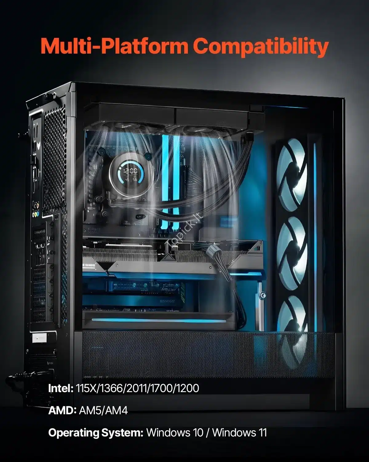 • Suderinamumas: Tinka daugeliui „Intel“ (115X/1366/2011/1700/1200) ir „AMD“ (AM5/AM4) lizdų.