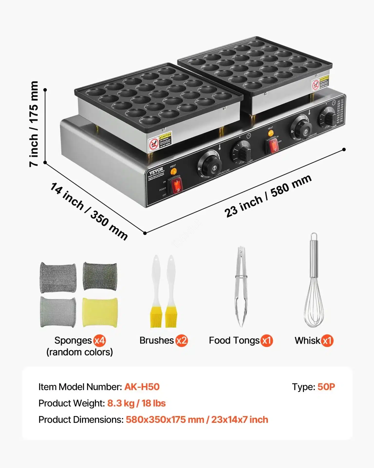 Profesionali elektrinė keptuvė olandiškiems blyneliams, 1800 W, 50 vnt.