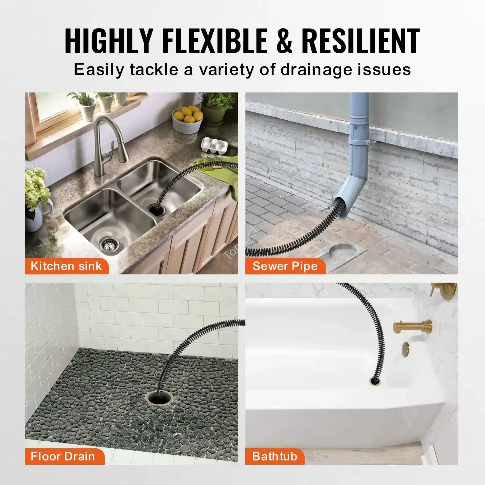 • Skirta Dideliems Vamzdžiams: Sukurta efektyviam valymui vamzdžiuose, kurių skersmuo siekia iki mm! Idealus pasirinkimas dideliems nuotekų vamzdynams namuose, biuruose ar viešosiose erdvėse.