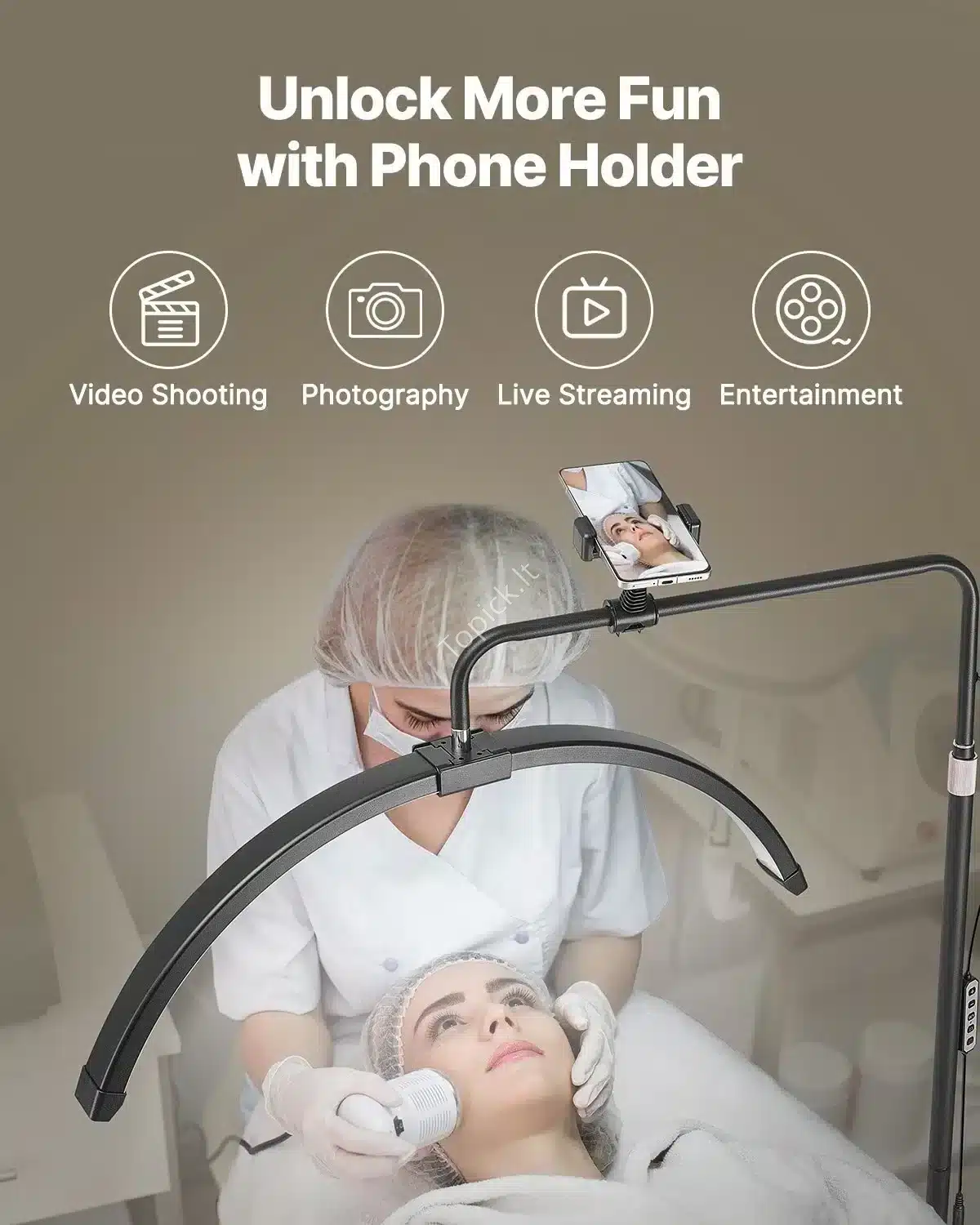 - Daugiafunkciškumas: Lempa komplektuojama su telefono laikikliu, kad galėtumėte patogiai filmuoti savo darbą, transliuoti tiesiogiai arba žiūrėti mokomąją medžiagą.